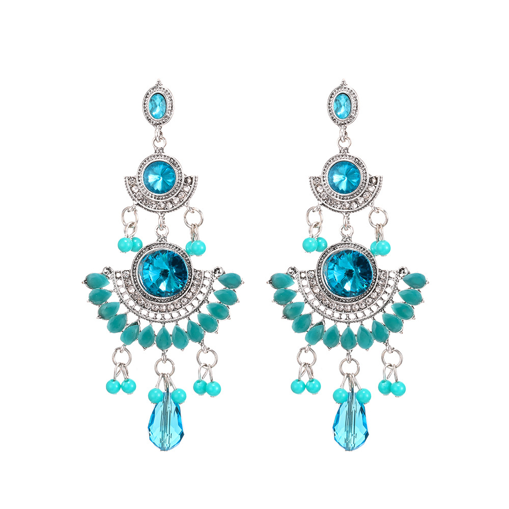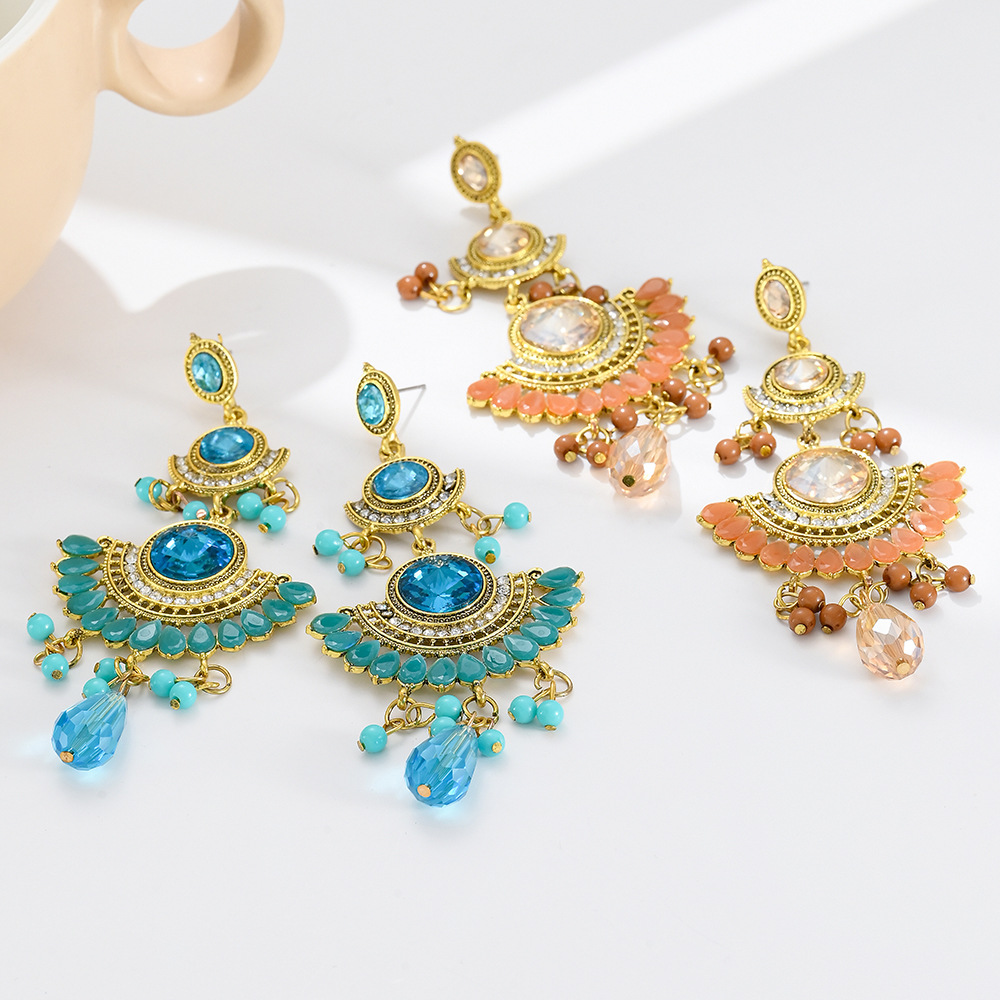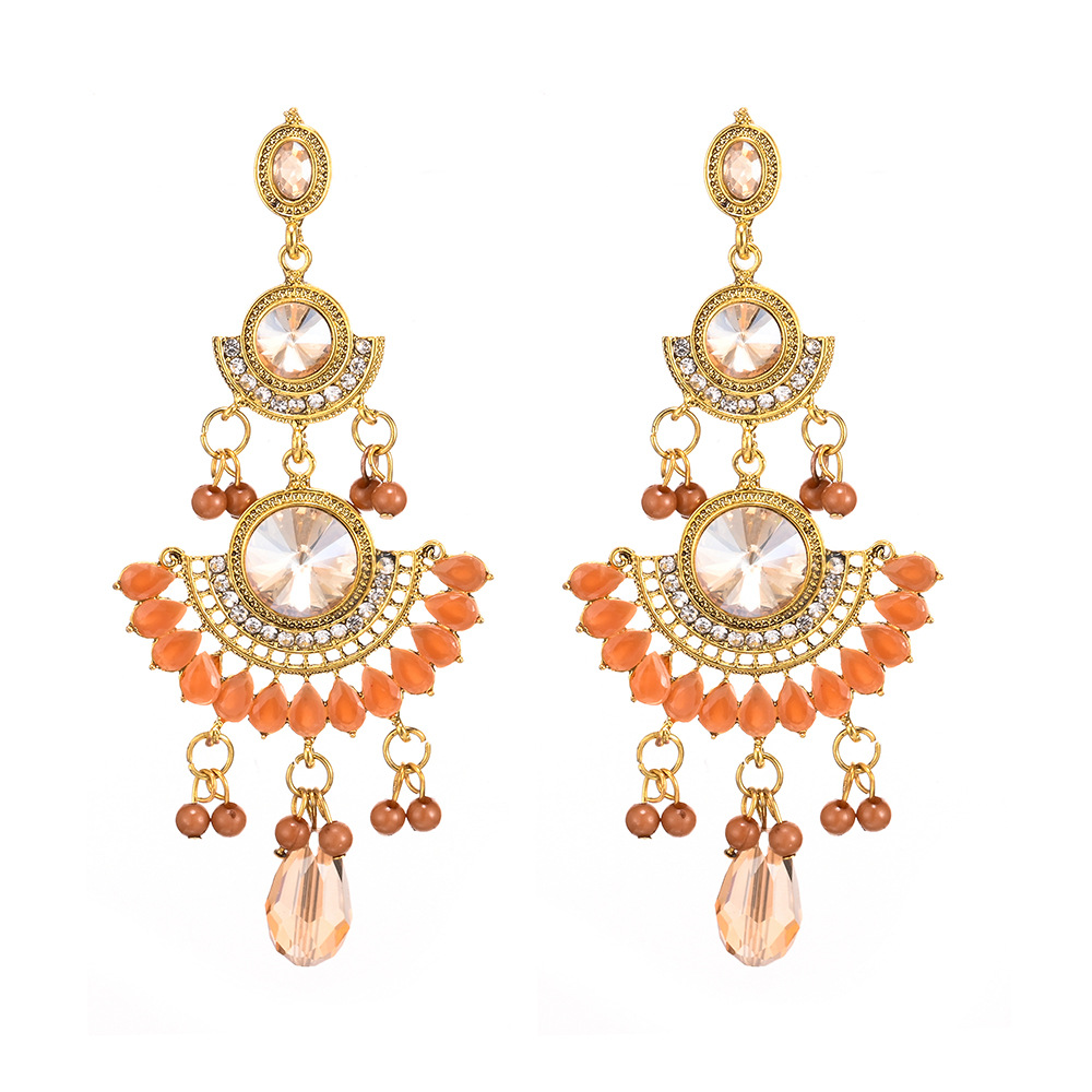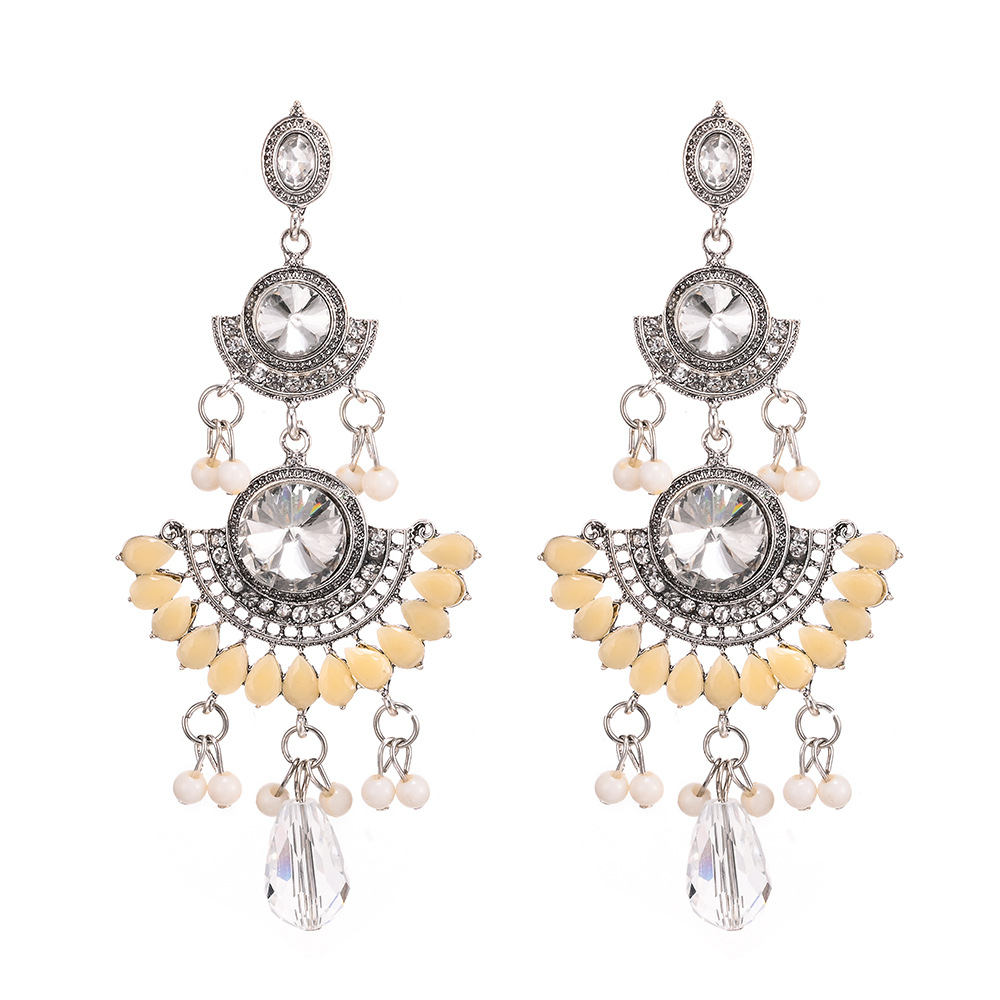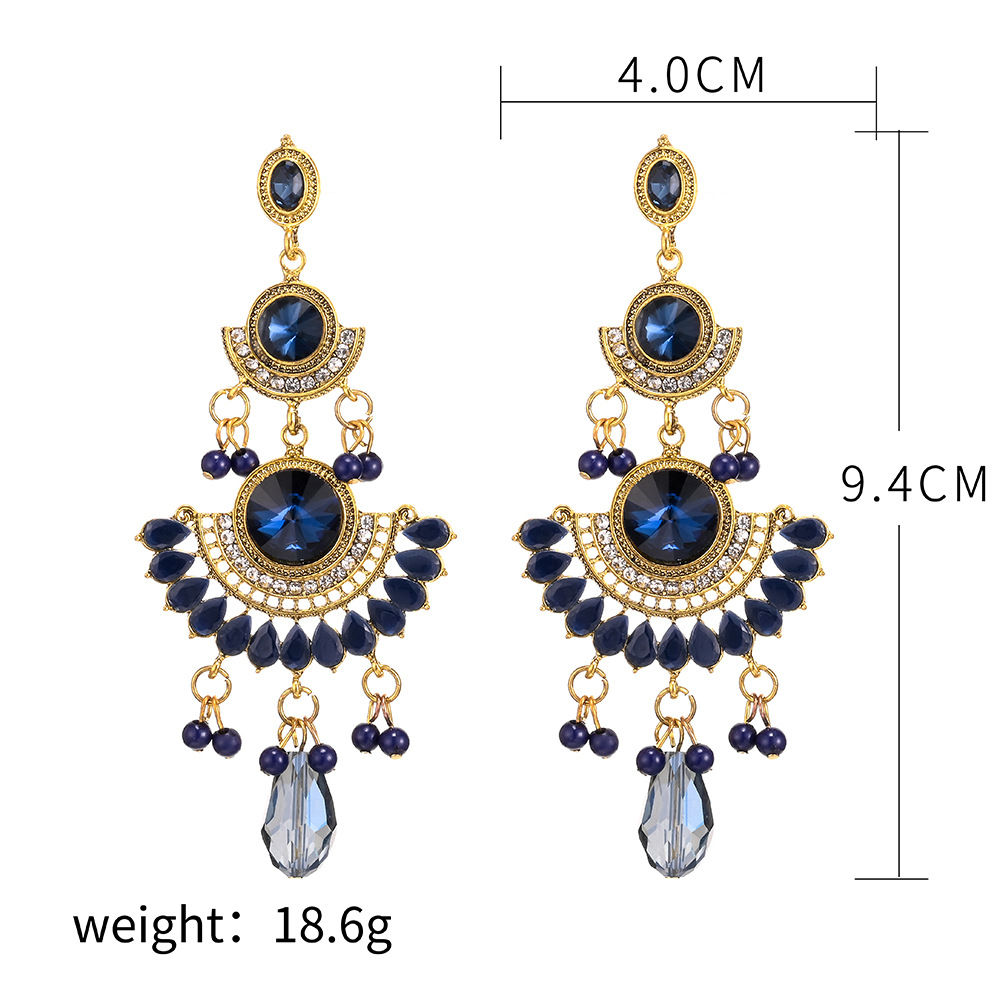 Personalized Long European and American Exaggerated Luxury Large Gemstone Colorfulful Tassel Rice Bead Earrings Jewelry Sense Niche Ladies Accessible Luxury