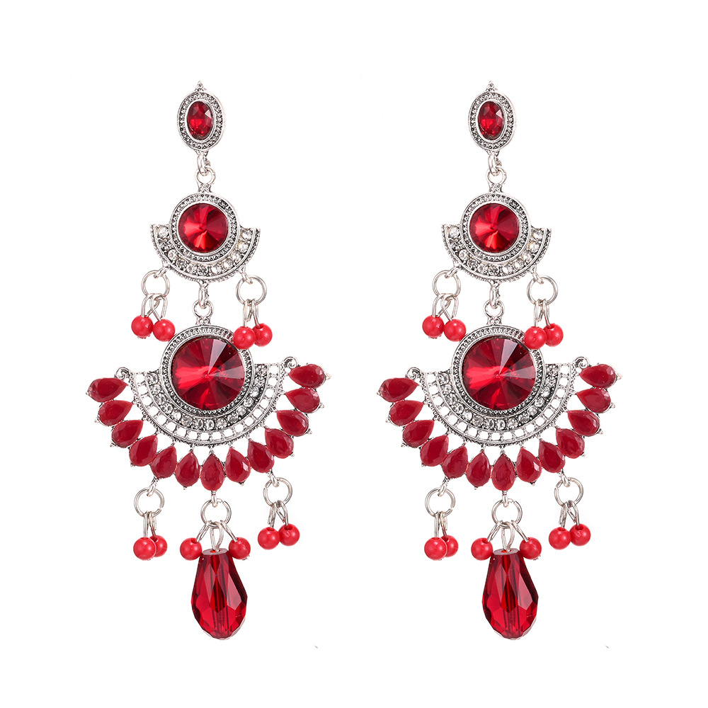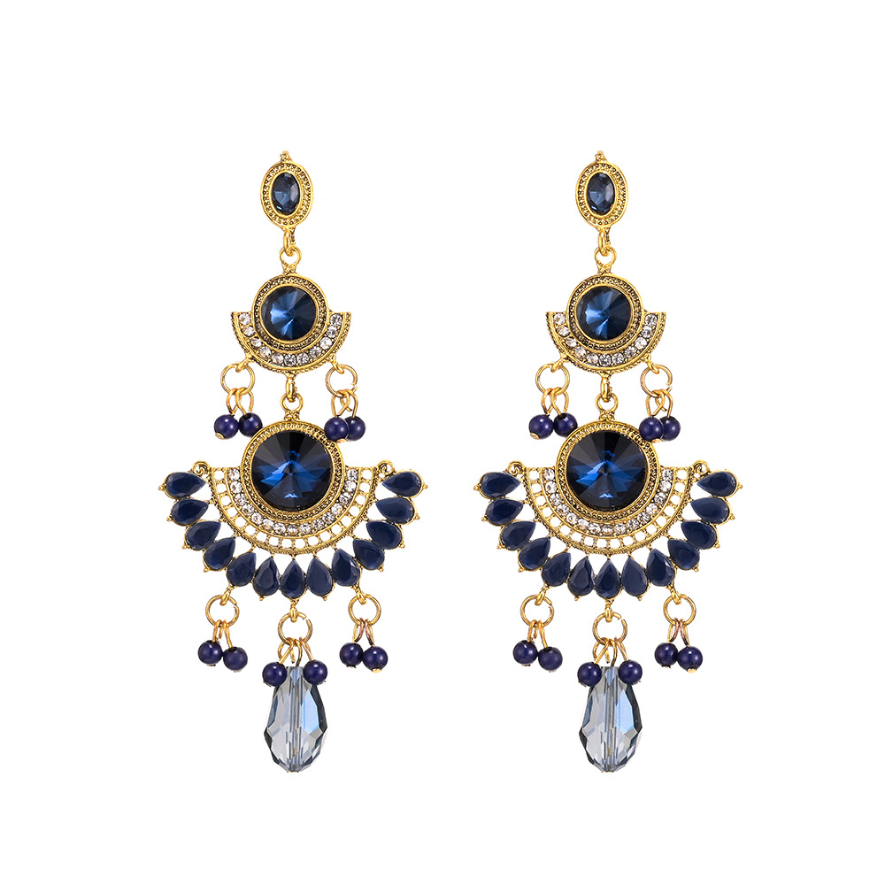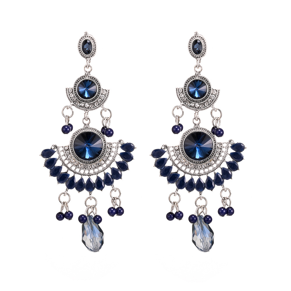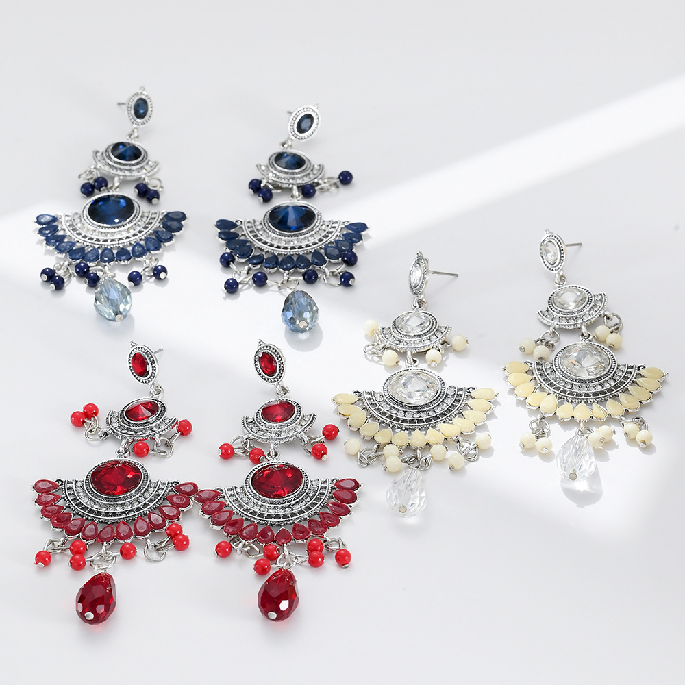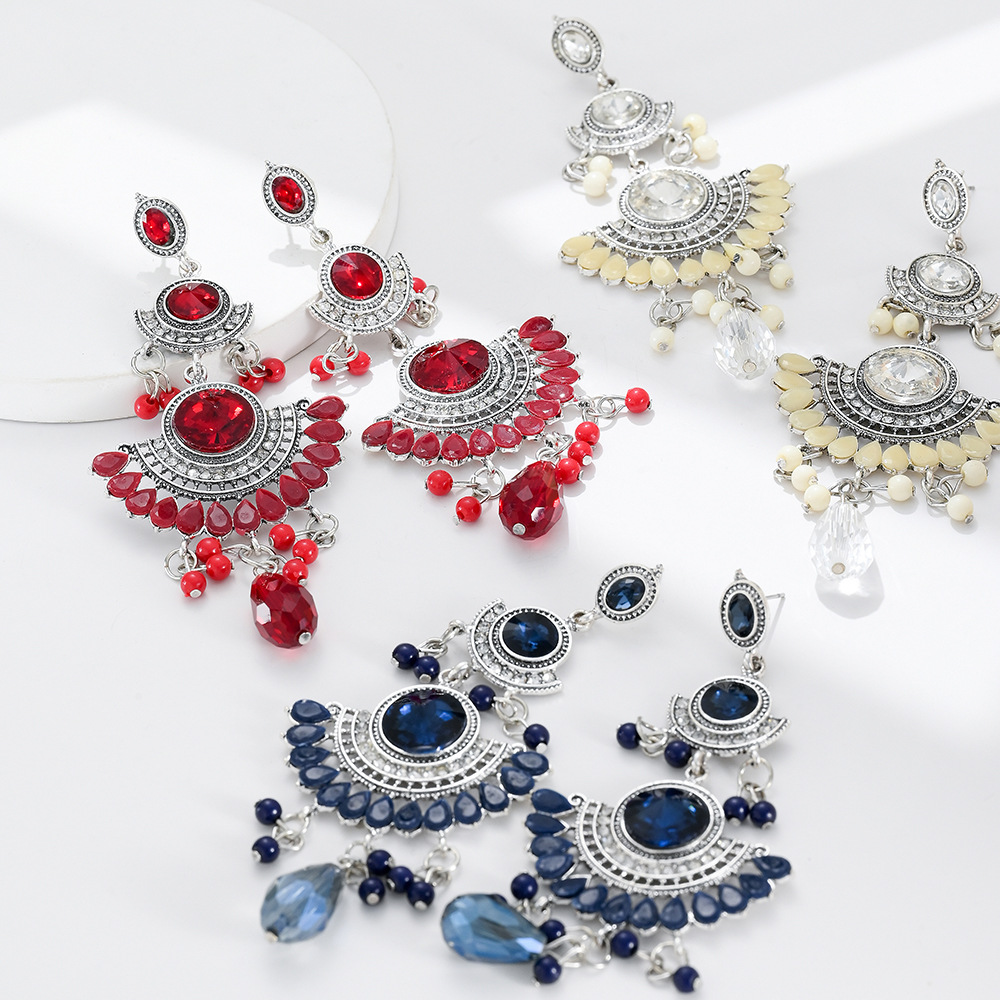 Personalized Long European and American Exaggerated Luxury Large Gemstone Colorfulful Tassel Rice Bead Earrings Jewelry Sense Niche Ladies Accessible Luxury