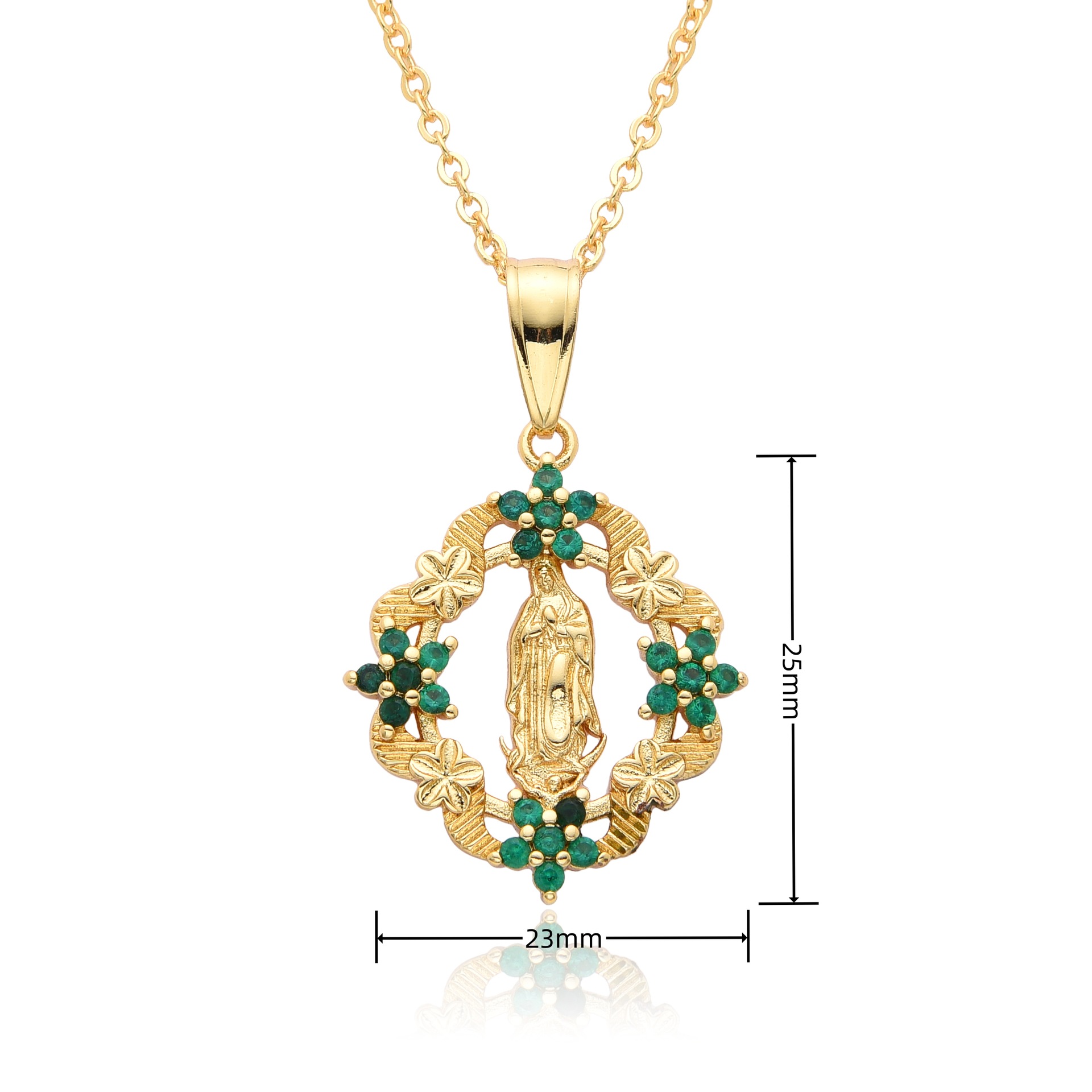 Cross-Border European and American Hot Selling Faith Virgin Mary Flower Necklace Women's Copper-Plated 18K Gold Pendant Jewelry Wholesale