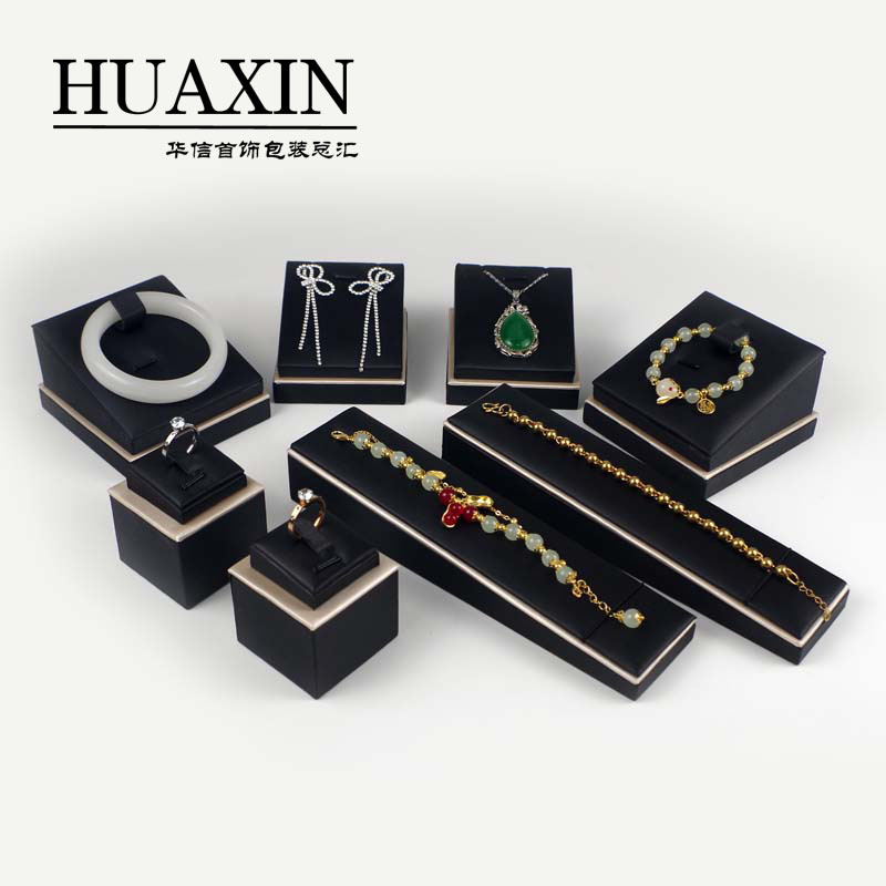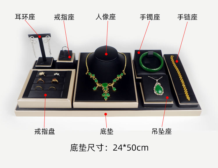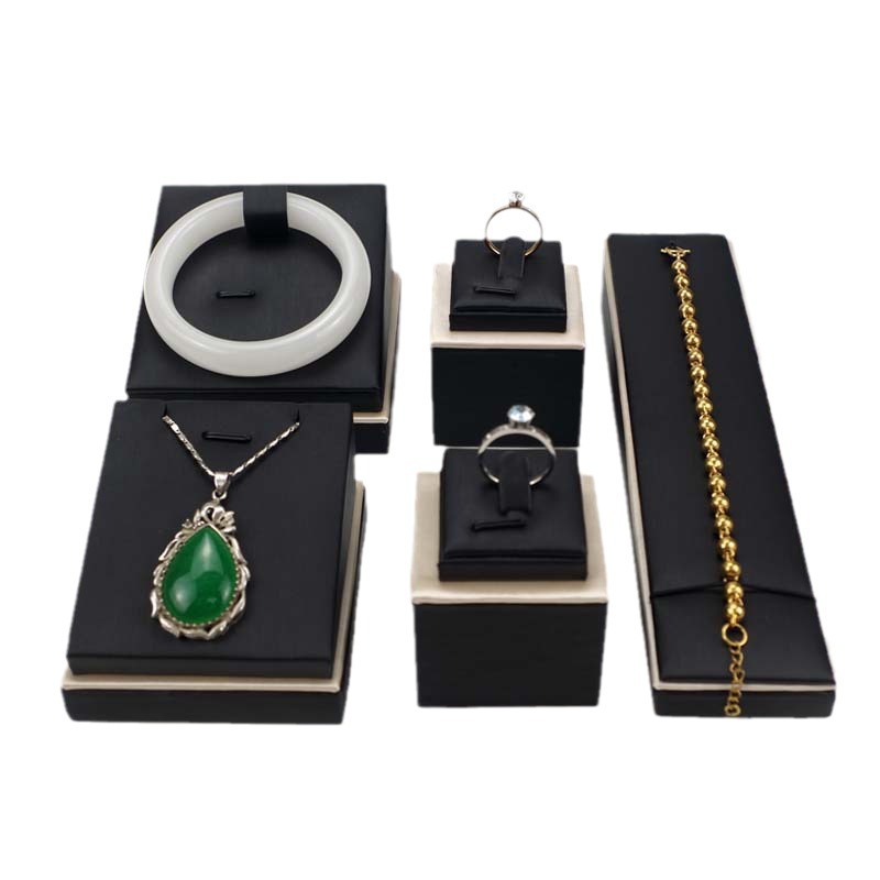 Leather jewelry counter set display ring earrings holder bracelet necklace holder display holder live jewelry holder
