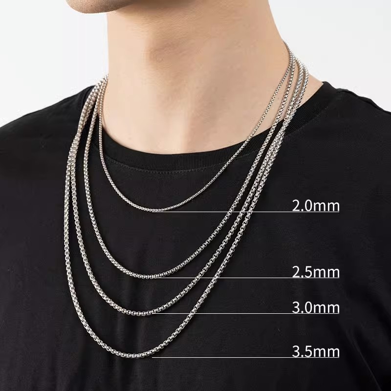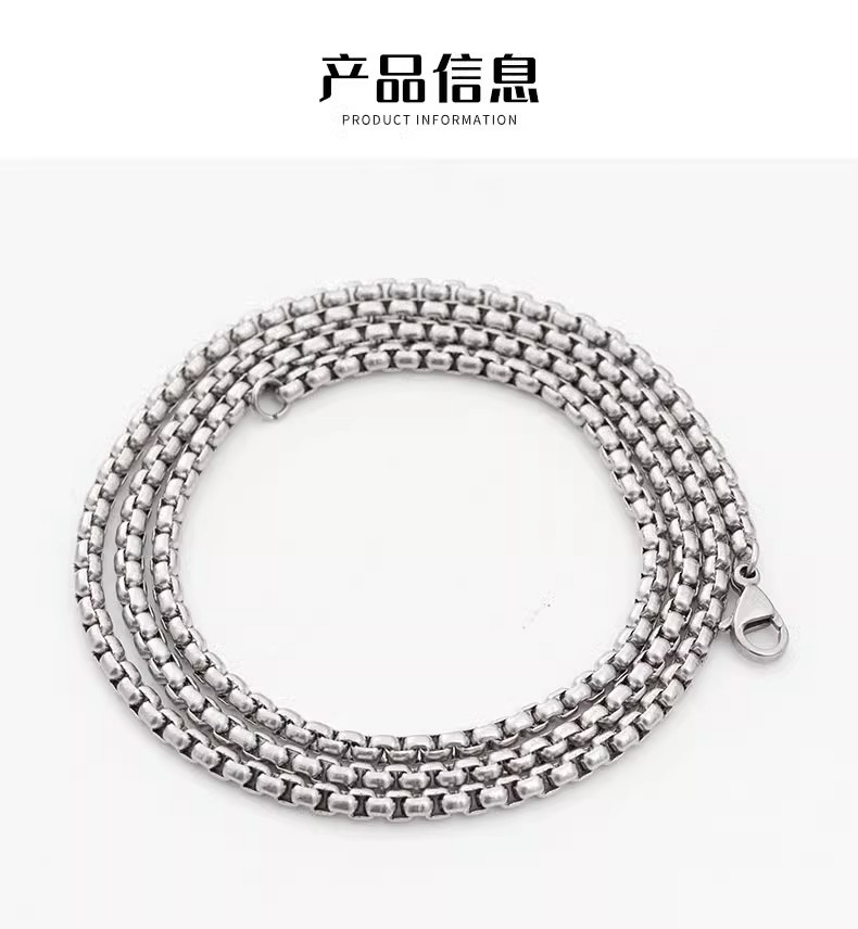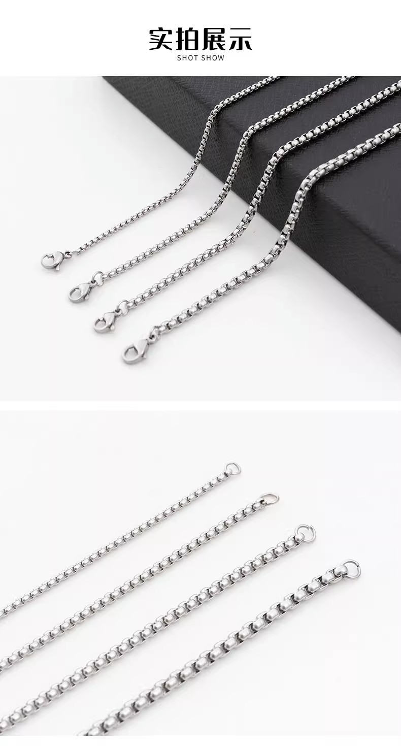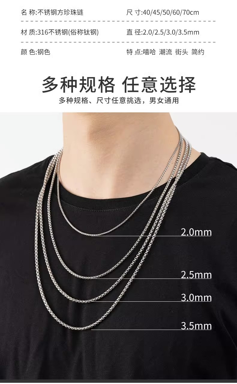 Titanium Steel Necklace, Ball Bead Chain, Men's Stainless Steel Jewelry, Non-Fading, Versatile Square Bead Chain, Extended Chain, Korean Style Women's Chain
