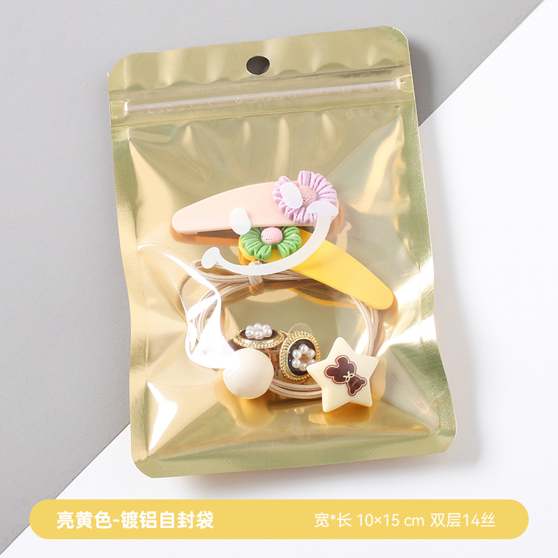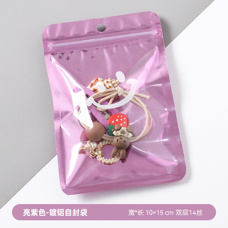 Cartoon Cute Smiley Self-sealing Bag Transparent Aluminized Inner Printing Jewelry Packaging Bag Ins Hairpin Necklace Sealed Bag