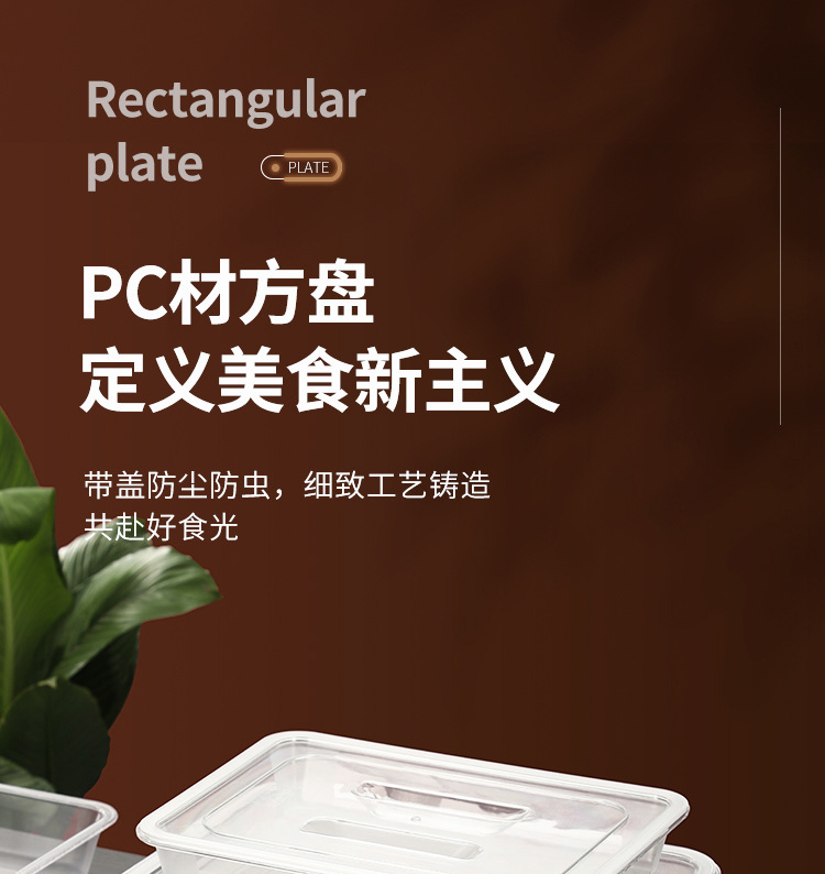 Acrylic Transparent Marinated Vegetable Cold Dice Plate Display Plate Commercial Cooked Food Tray Plastic Box Flat Plate Rectangular Square Plate