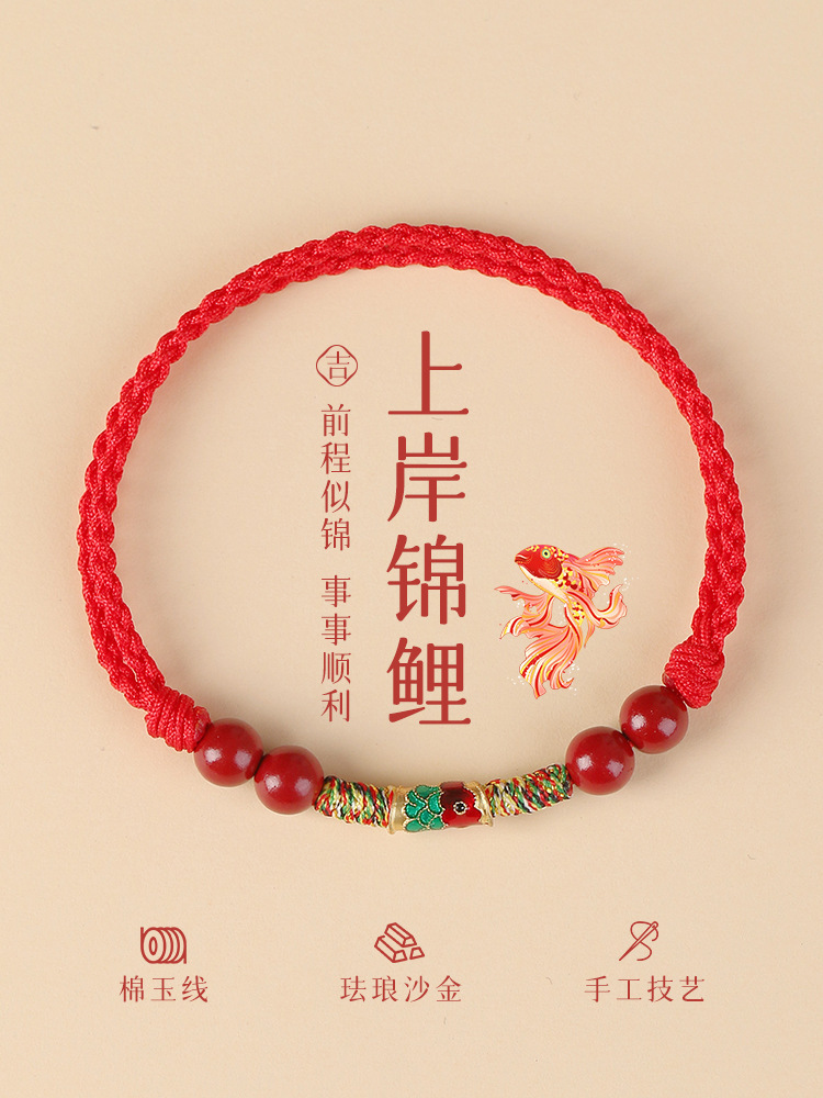 Koi Fish Bracelet, Good Luck Red String Anklet for Women, Men's Red String Woven Rope, Simple Gift, Chinese Style