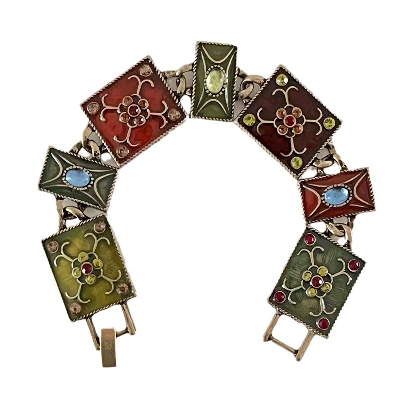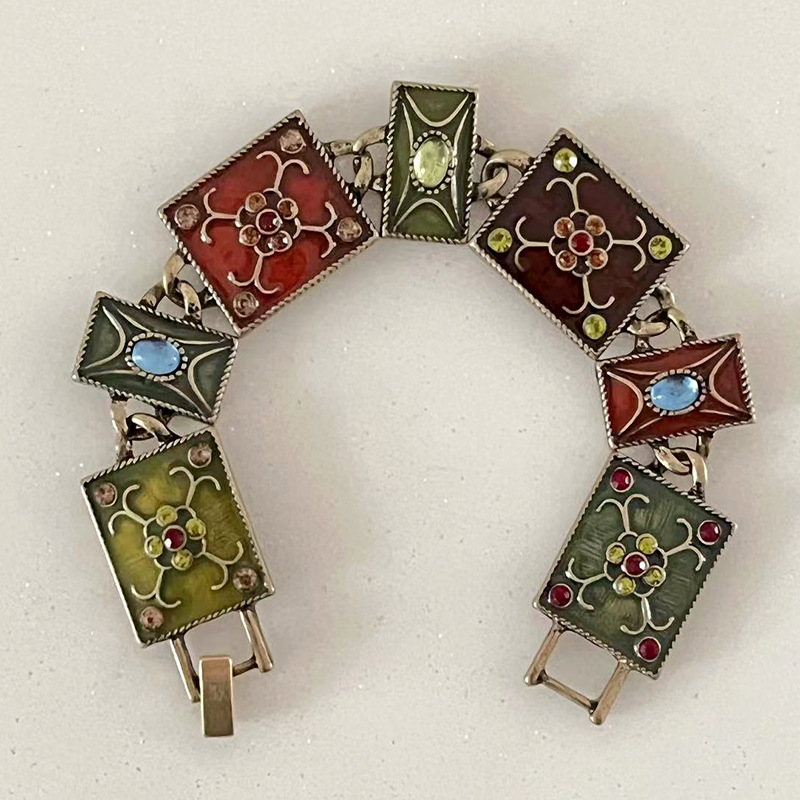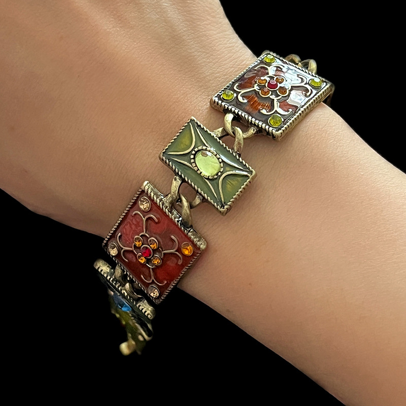 lc vintage bracelet oil dripping semi-transparent enamel color square bracelet Chinese ancient style Qingdao Foreign trade jewelry