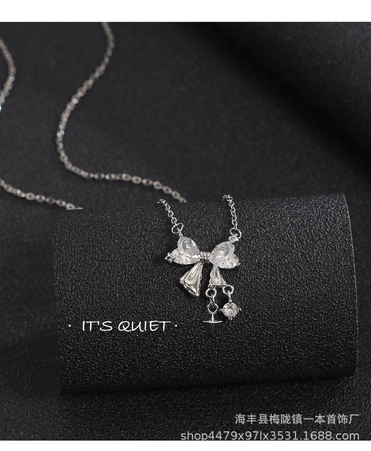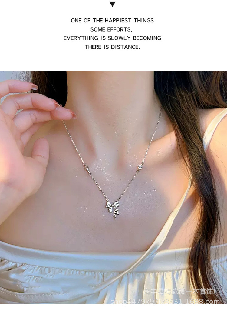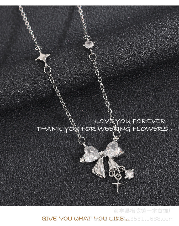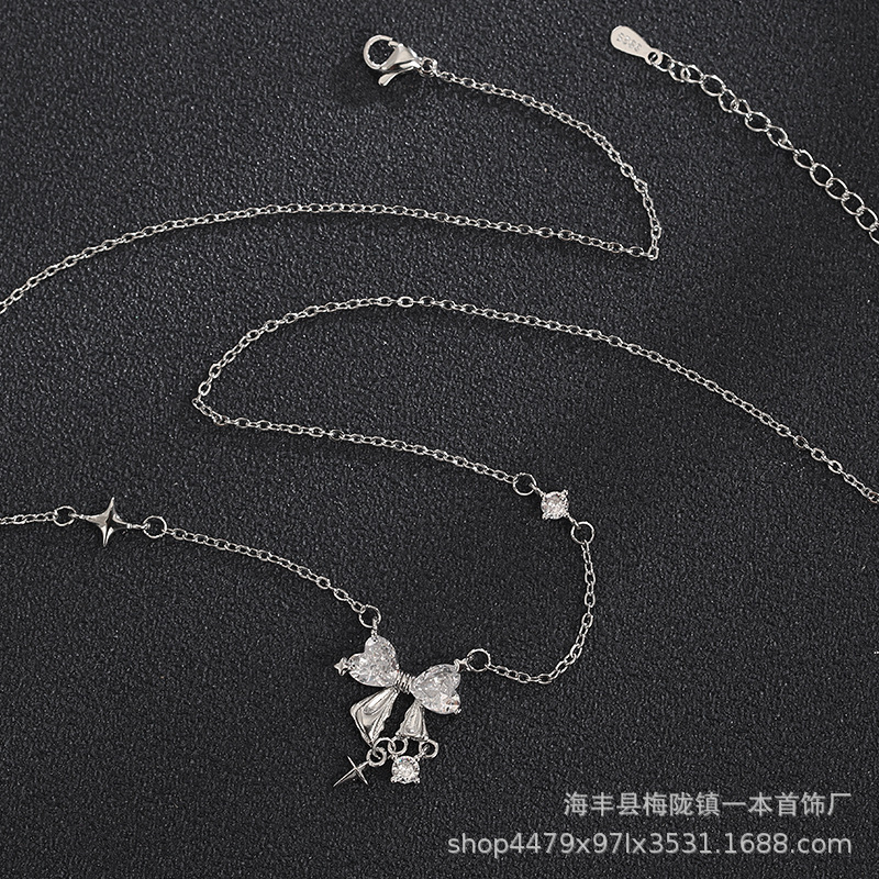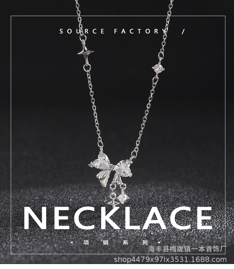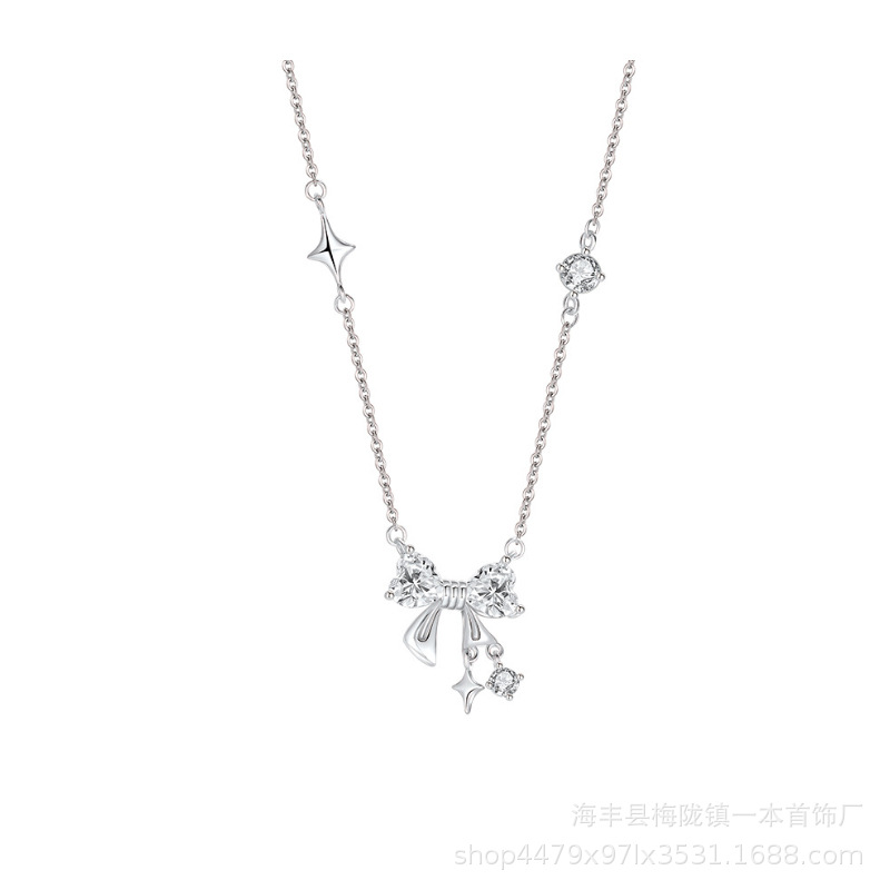A super flash bow necklace for women sweet niche high-grade design star pendant clavicle chain New