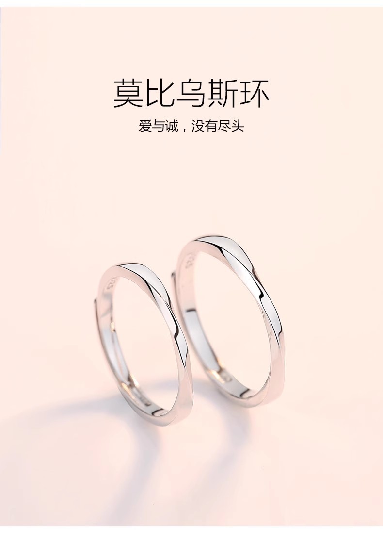 Mobius ring couple ring 999 sterling silver ring men and women couple niche design birthday gift for girlfriend
