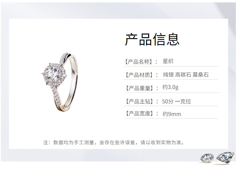 Factory Direct sterling silver ring female star woven moissanite Diamond Ring 1 karat open mouth twisted arm female ring Live supply