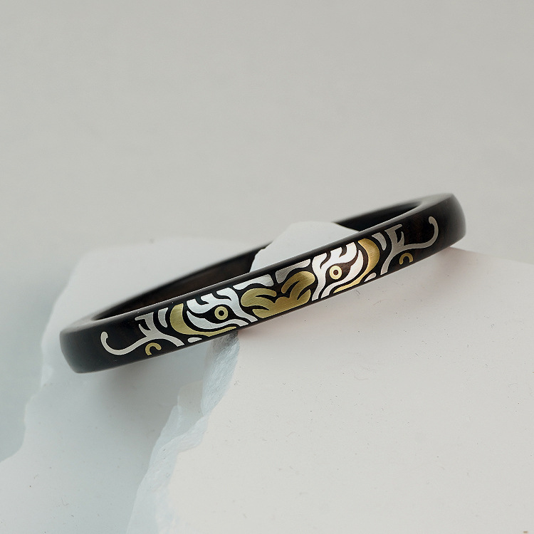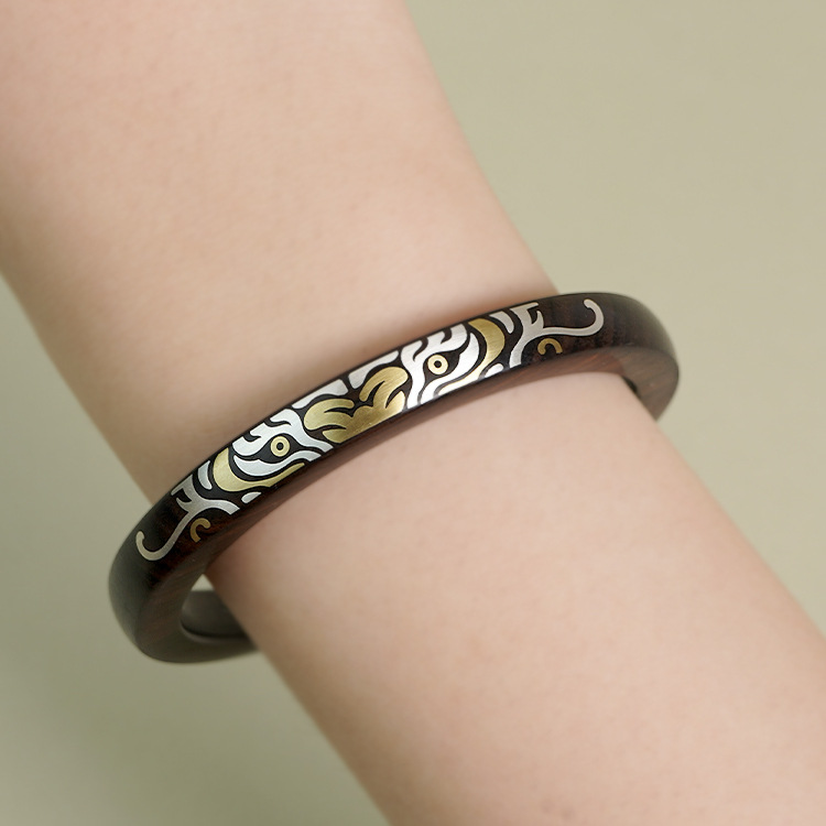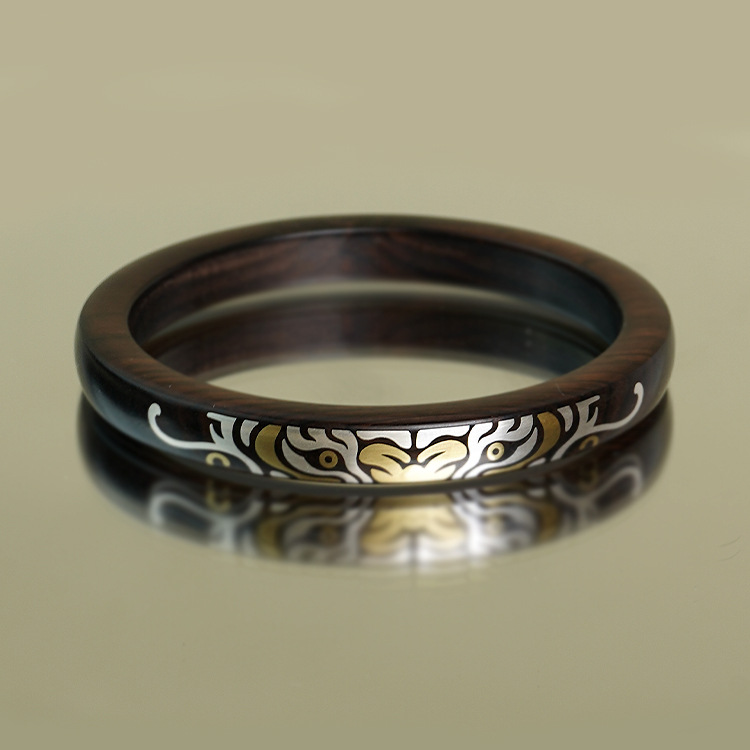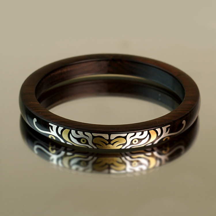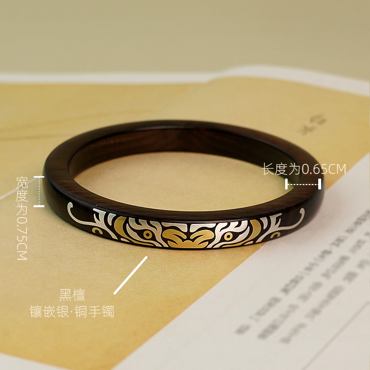 Ebony Wood Inlaid with Silver Tiger Bracelet, Purple Sandalwood Inlaid with Mountain Zhuang Style Wooden Bracelet, Jewelry Bracelet, Custom-Made