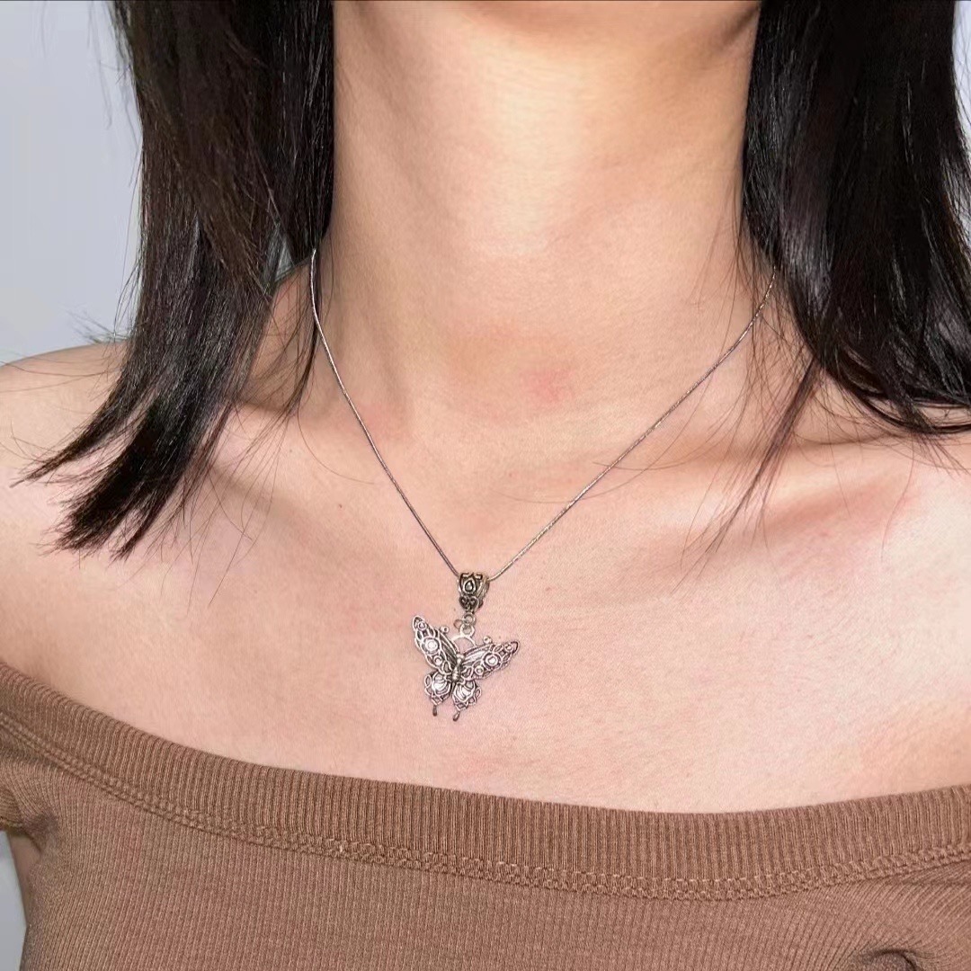 New Titanium Steel Y2K Retro Butterfly Pendant Necklace Female Millennium Sexy Subculture New Chinoiserie Non-Fading Necklace