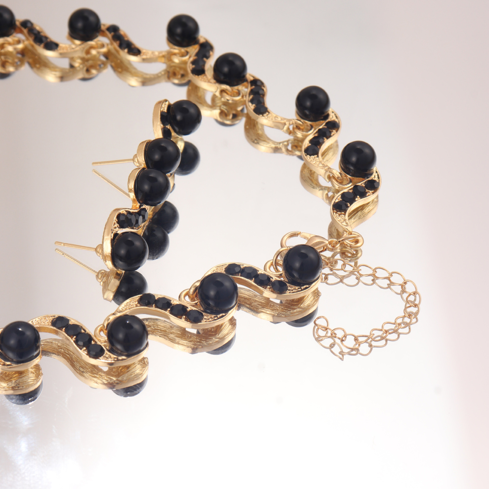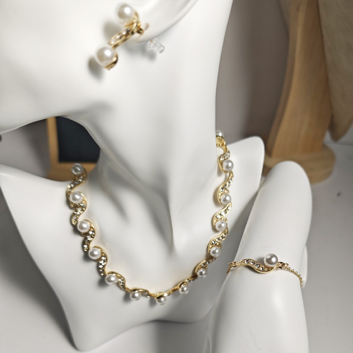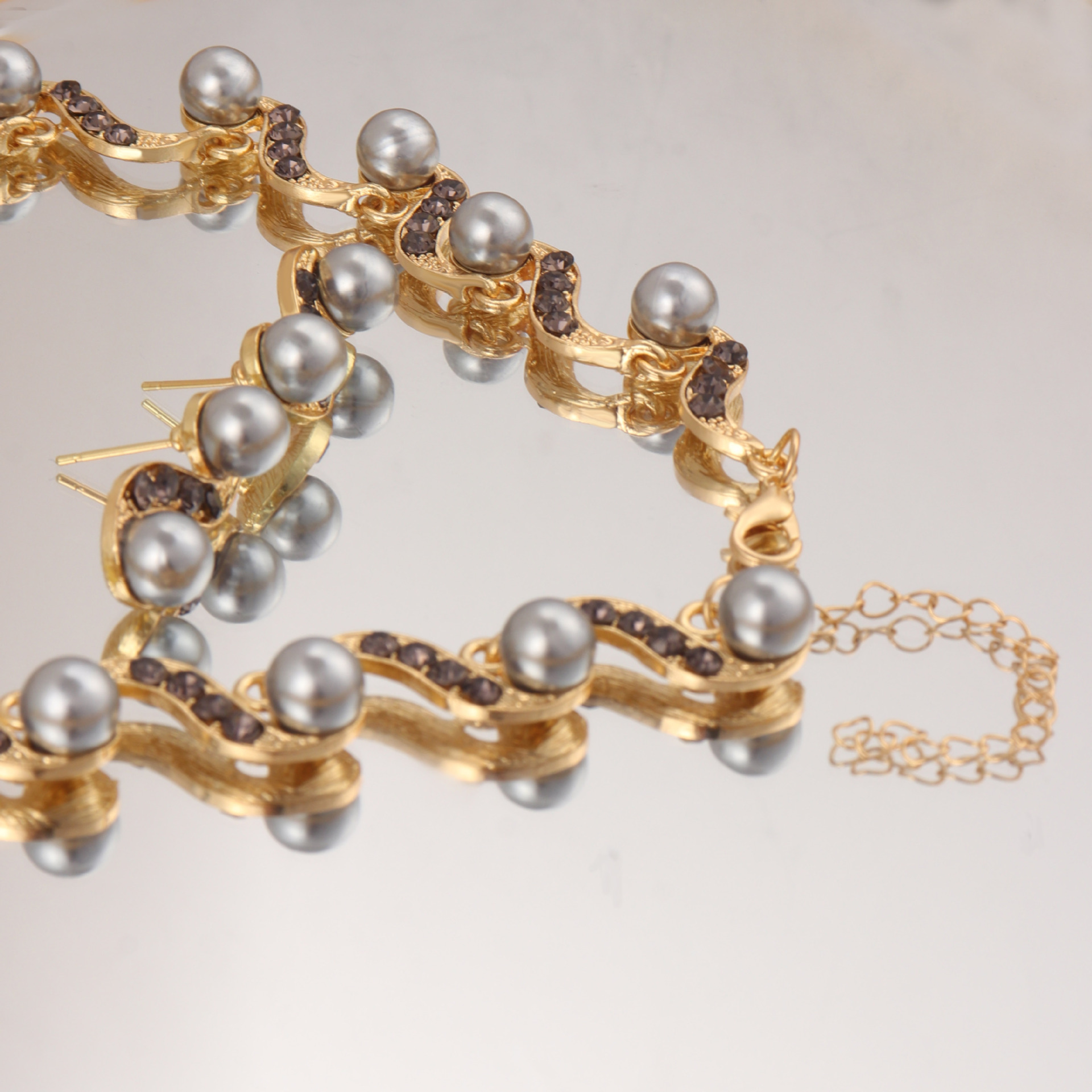 Factory Direct batch cross-border European and American Foreign trade new S-shaped alloy pearl necklace earrings Women's Light luxury niche clavicle chain