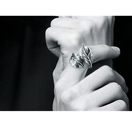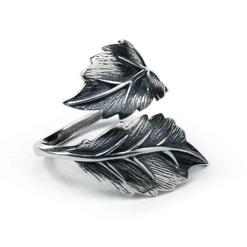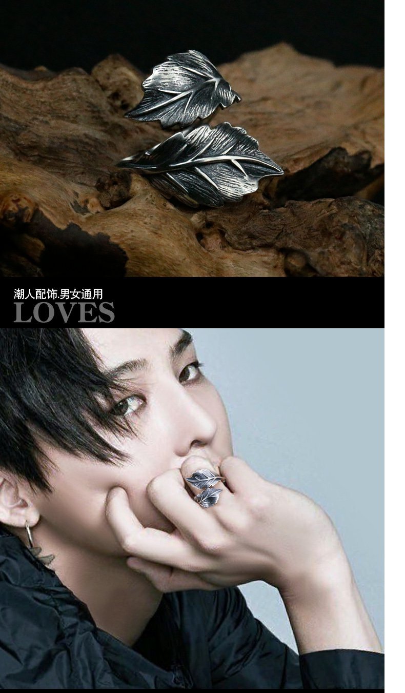 Chiba men's and girls' 925 Thai silver ring personality Korean style exaggerated leaf tide index finger ring INS All-Match ring