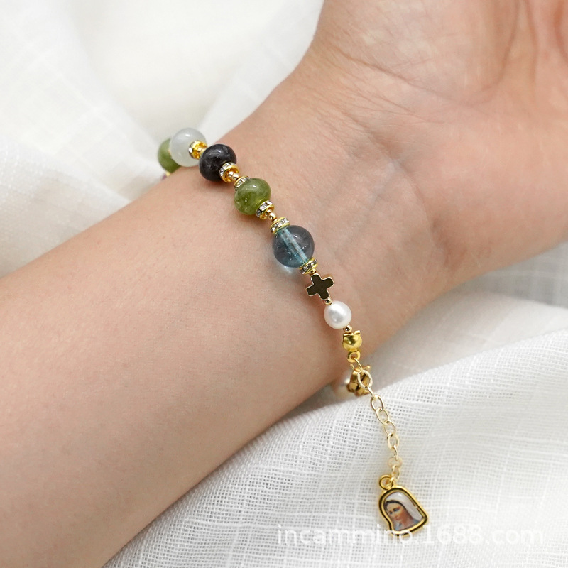 5X8mm bead diameter Mozu goye tourmaline jade bracelet one end rosary Italian Camino original bracelet generation hair