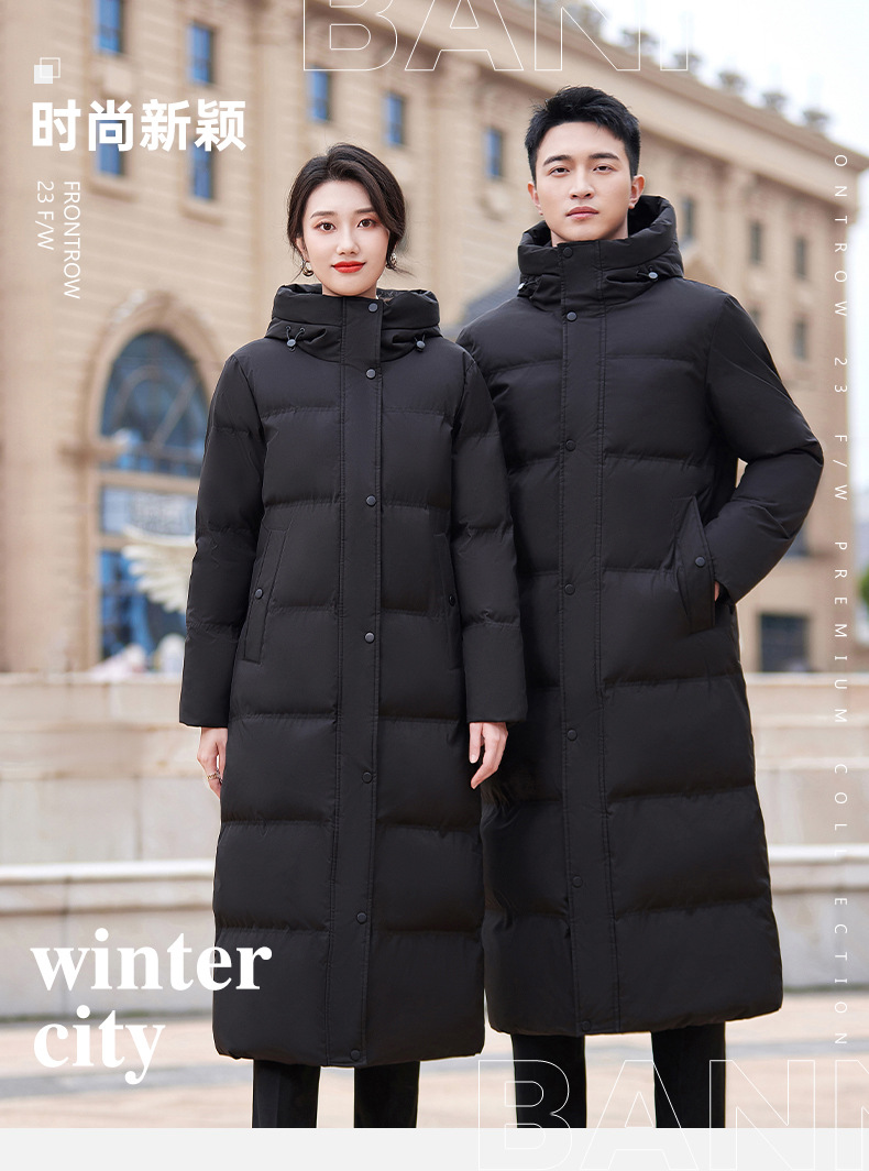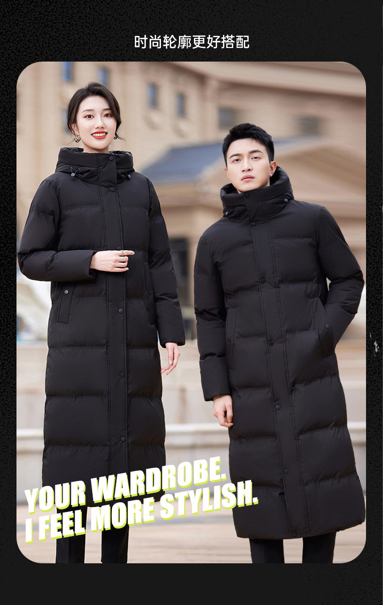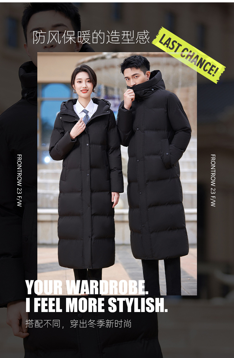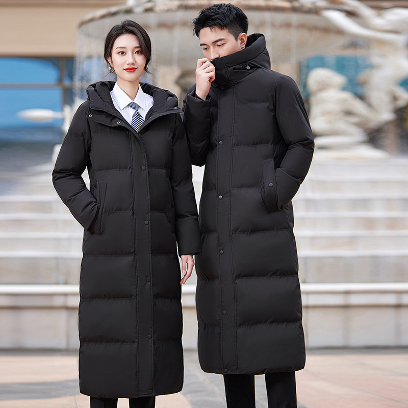 Black Down cotton-padded clothes mid-length jewelry shop business wear work clothes hotel front desk sales department men and women same style