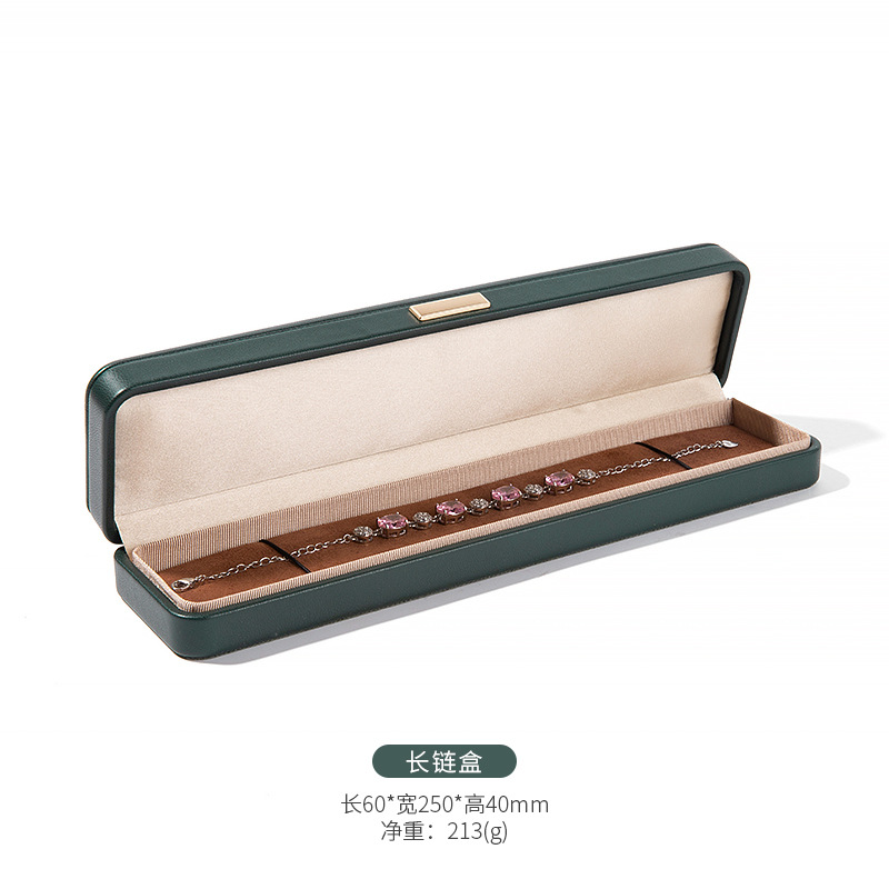 Specifications and models: Dark green long chain box; high-end pu leather jewelry box