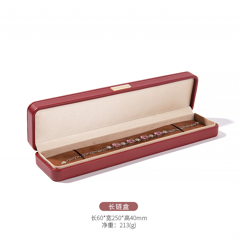 Specifications and models: Red long chain box; high-end pu leather jewelry box