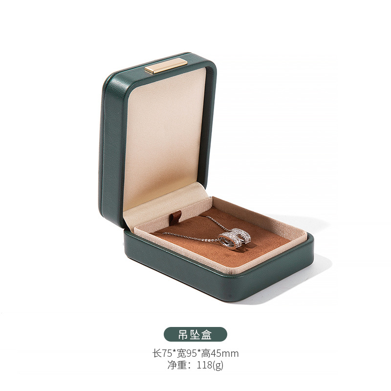 Specifications and models: Dark green pendant box; high-end pu leather jewelry box