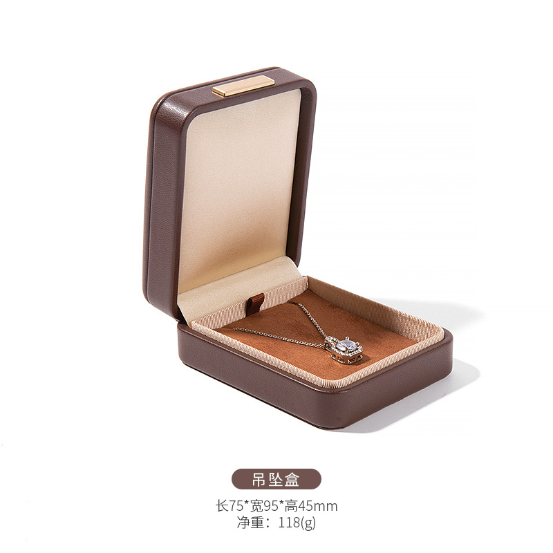 Specifications and models: Brown pendant box; high-end pu leather jewelry box