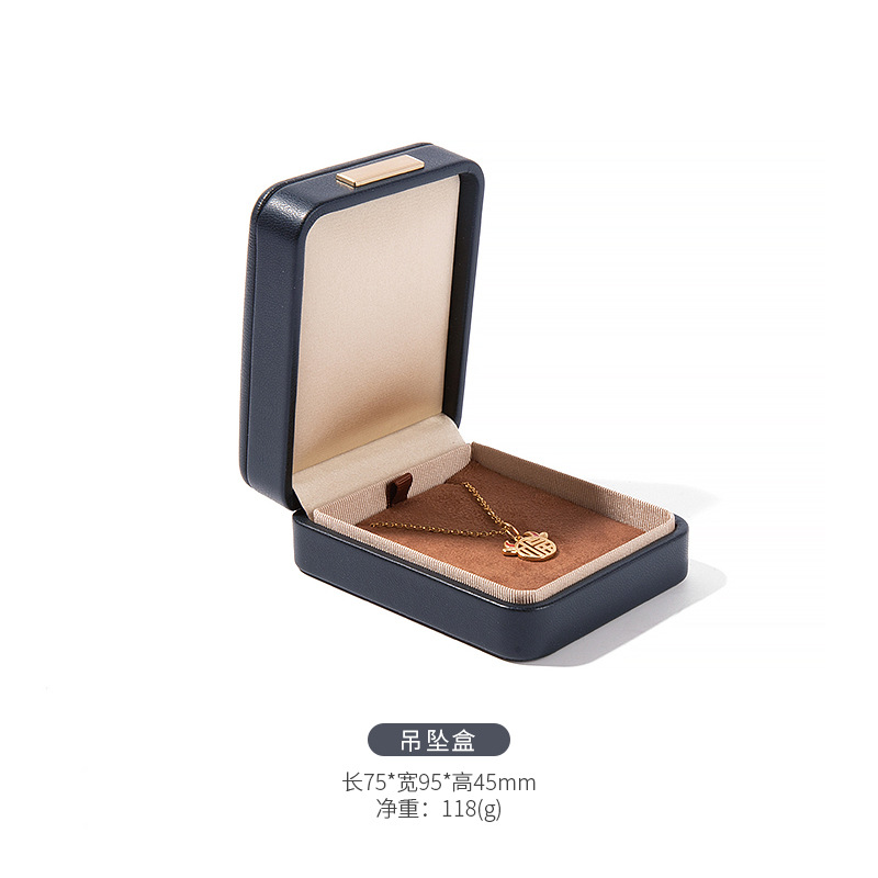 Specifications and models: Navy blue pendant box; high-end pu leather jewelry box