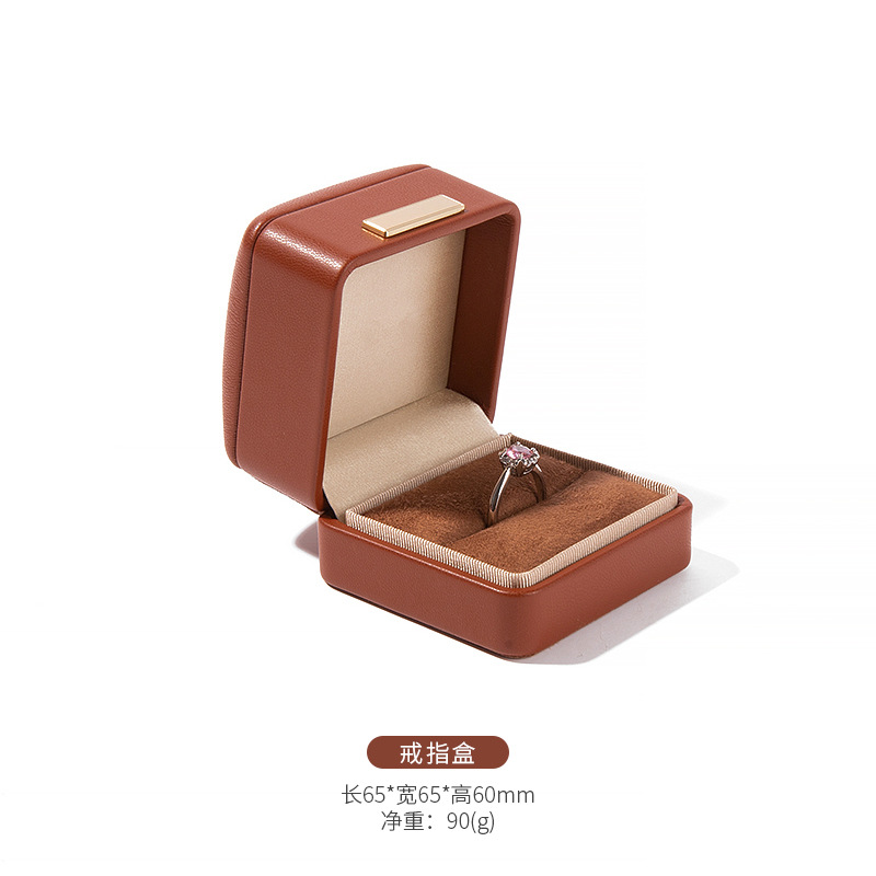 Specifications and models: Brown ring box; high-end pu leather jewelry box