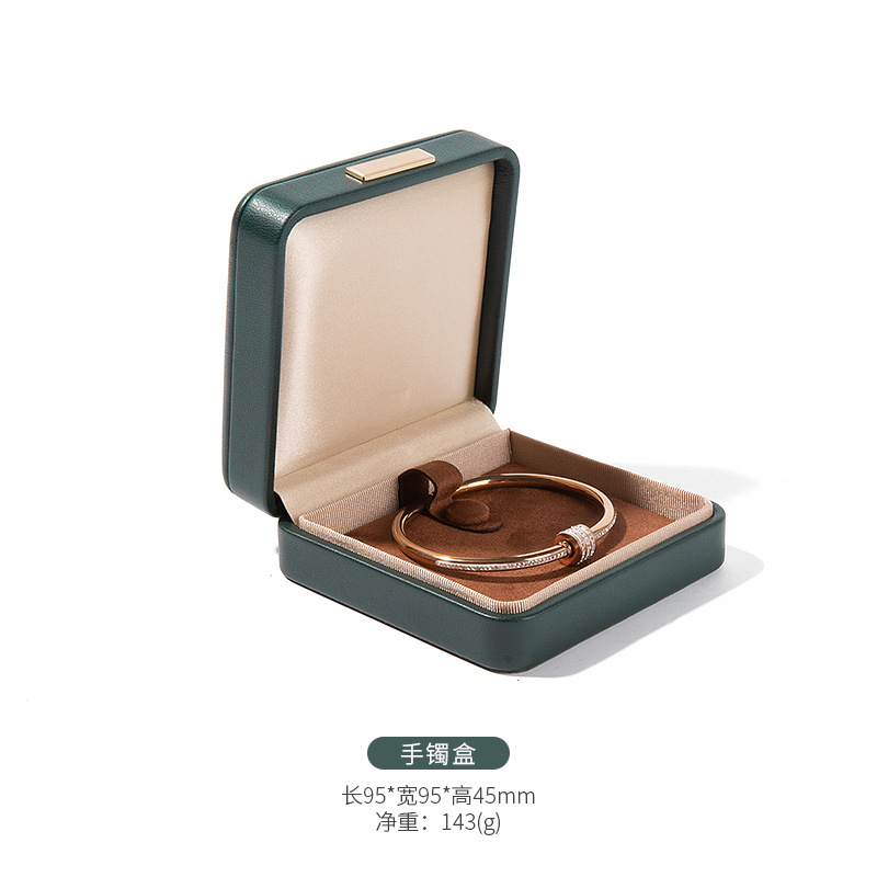 Specifications and models: Dark green bracelet box; high-end pu leather jewelry box