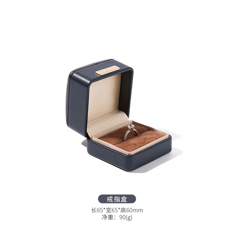 Specifications and models: Navy blue ring box; high-end pu leather jewelry box
