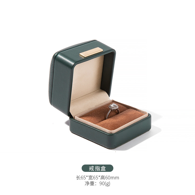 Specifications and models: Dark green ring box; high-end pu leather jewelry box