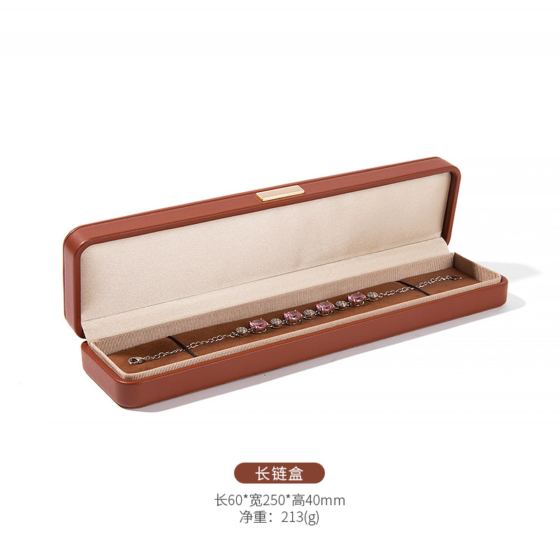 Specifications and models: Brown long chain box; high-end pu leather jewelry box