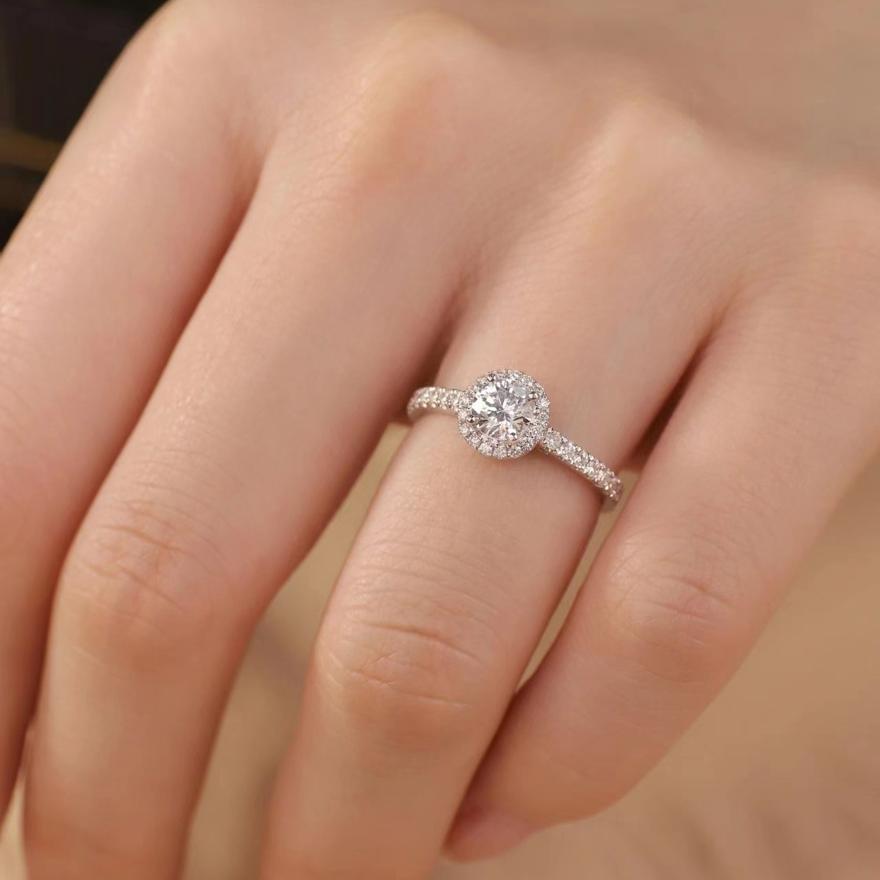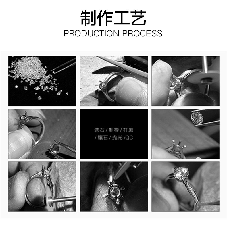 Tiktok Kuaishou live supply classic round square bag 1 karat eight hearts and eight arrows 5A zircon high carbon diamond ring for women