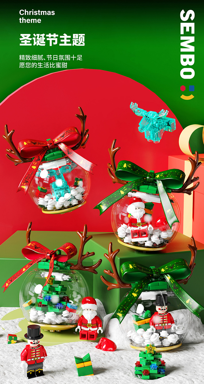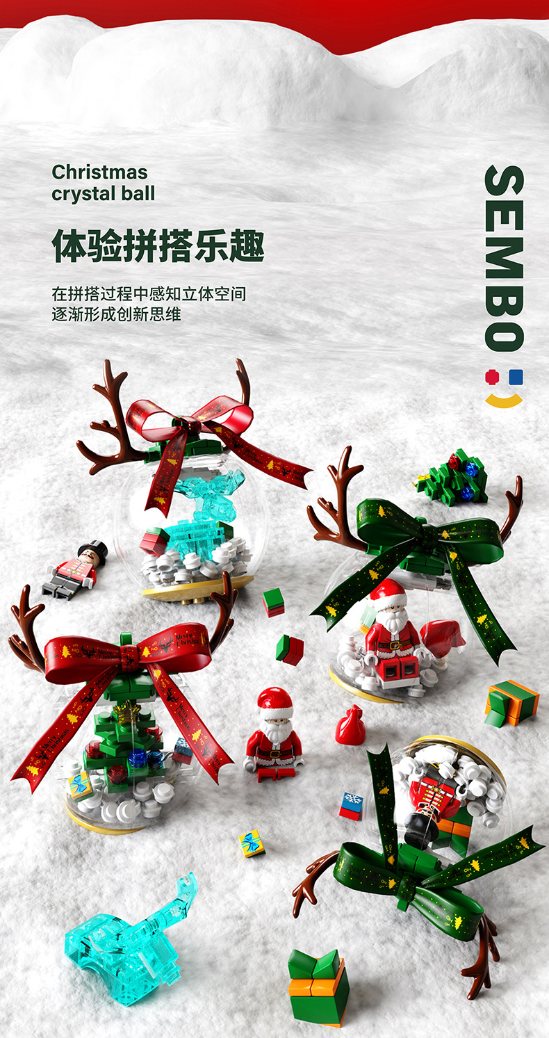 Senbao 601155 ice crystal elk Nutcracker Christmas gift blind box building blocks Christmas tree pendant toys