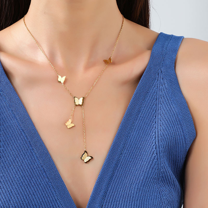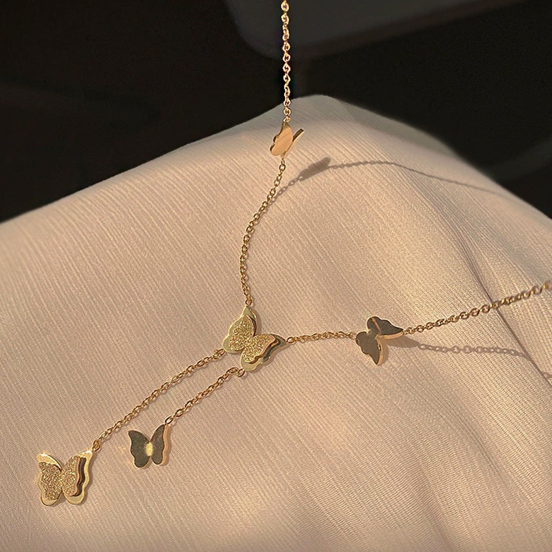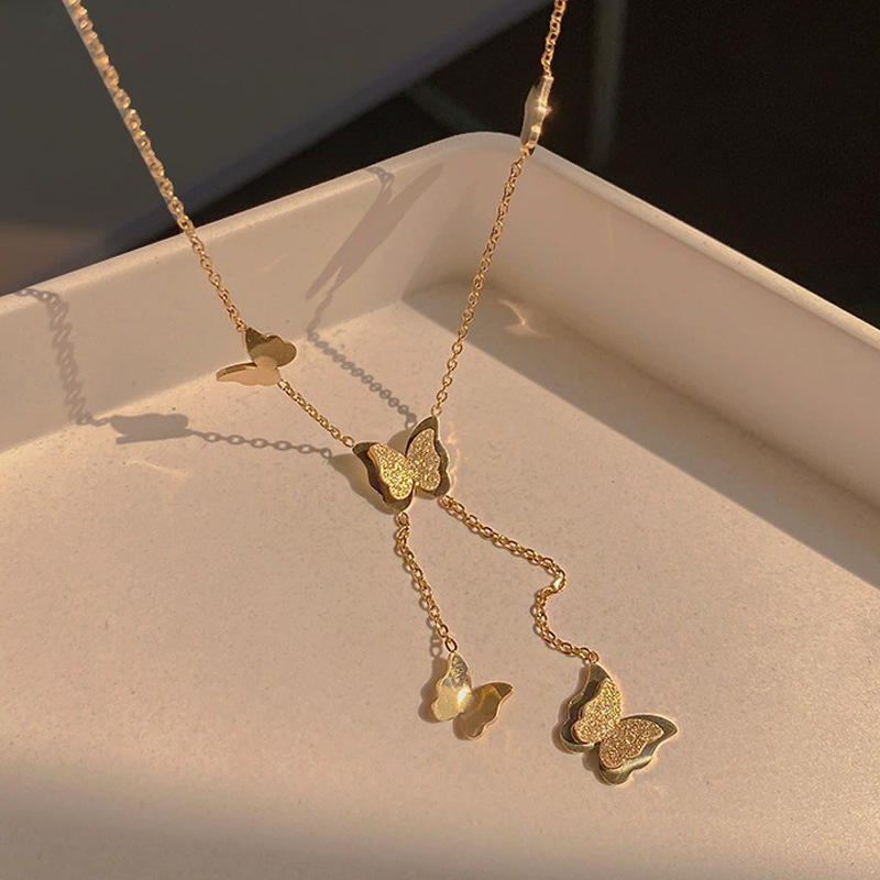 Butterfly tassel sweater chain titanium steel necklace jewelry girls niche design sense neck chain light luxury high-end fashion accessories