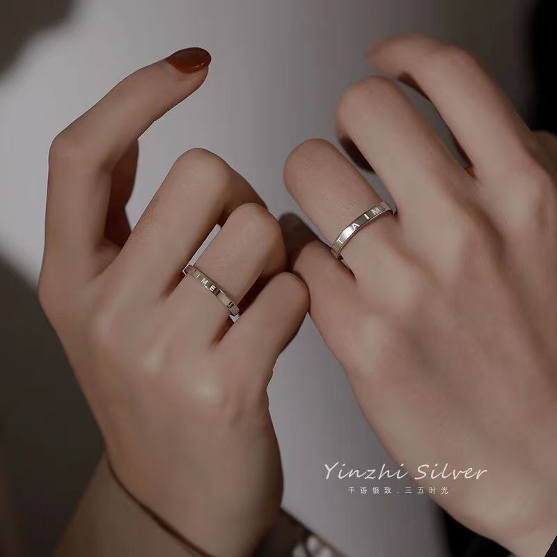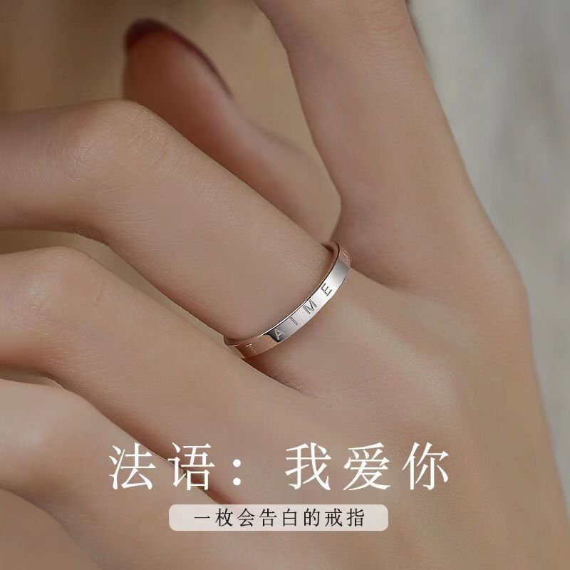 s925 sterling silver French I love you jetaime couple ring men's and Women's Open adjustable couple ring simple