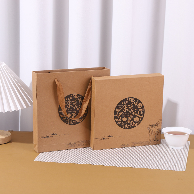 In stock Fuding white tea Kraft Paper Box 357g tea cake packaging paper box Pu'er tea packaging box can be printed logo