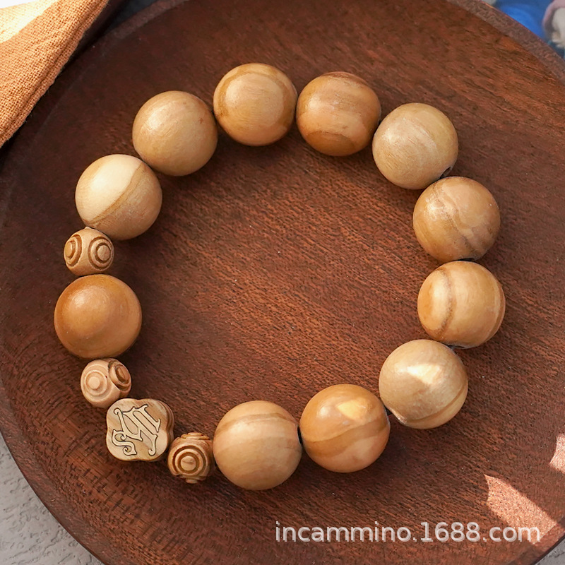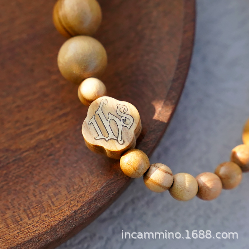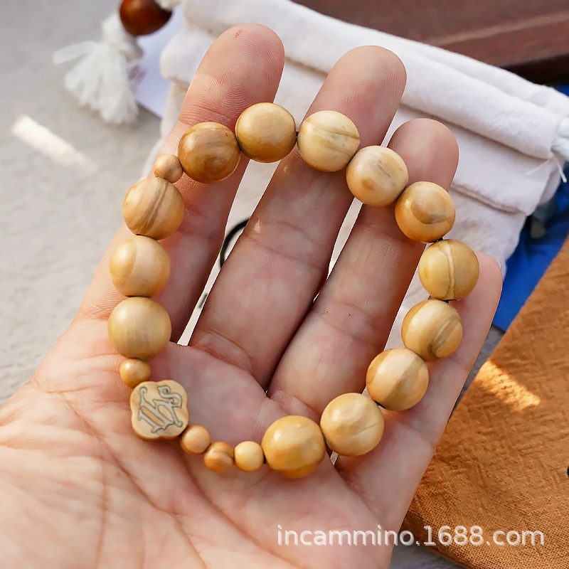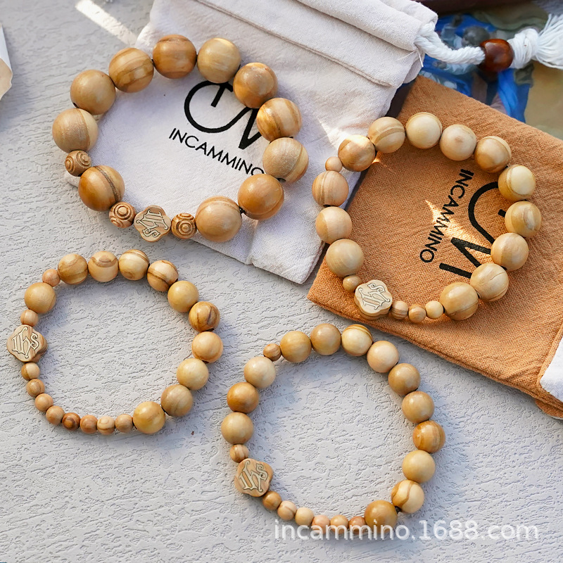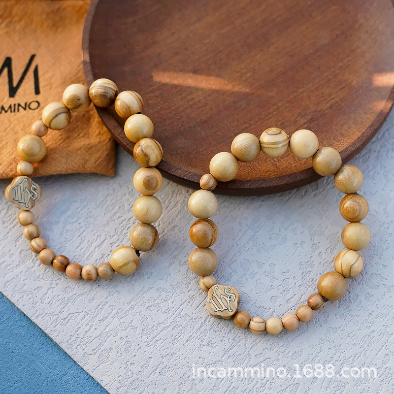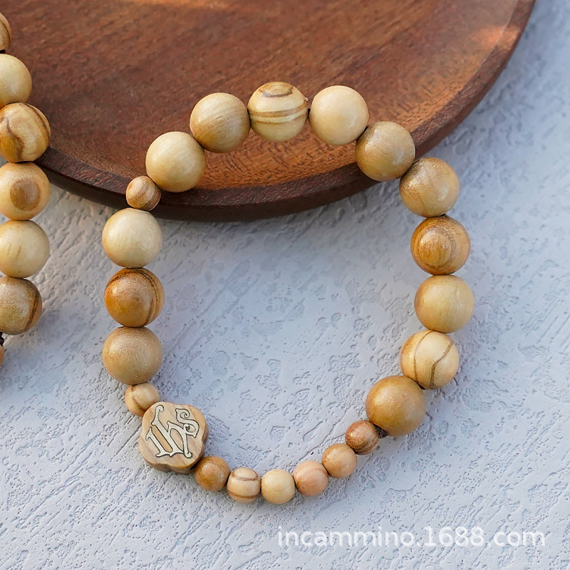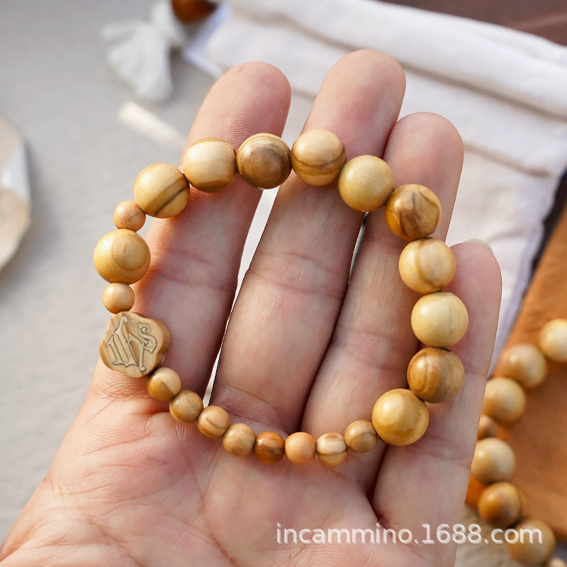 Olive wood bracelet rose rosary portable elastic bracelet large beads YS cross carving free storage bag