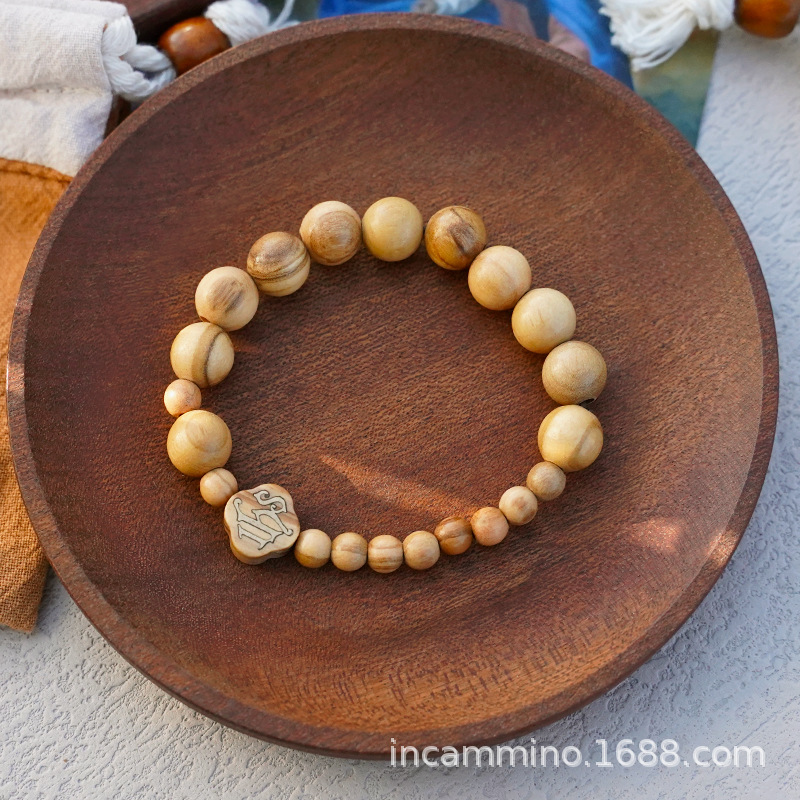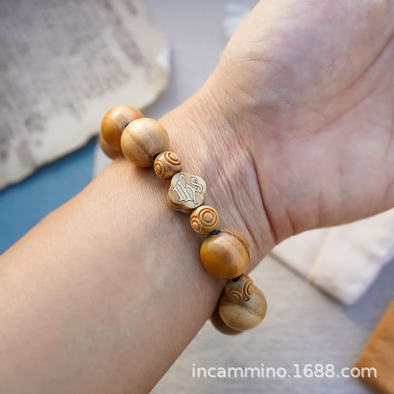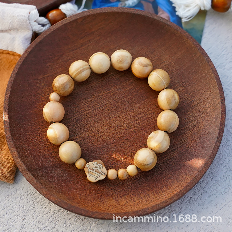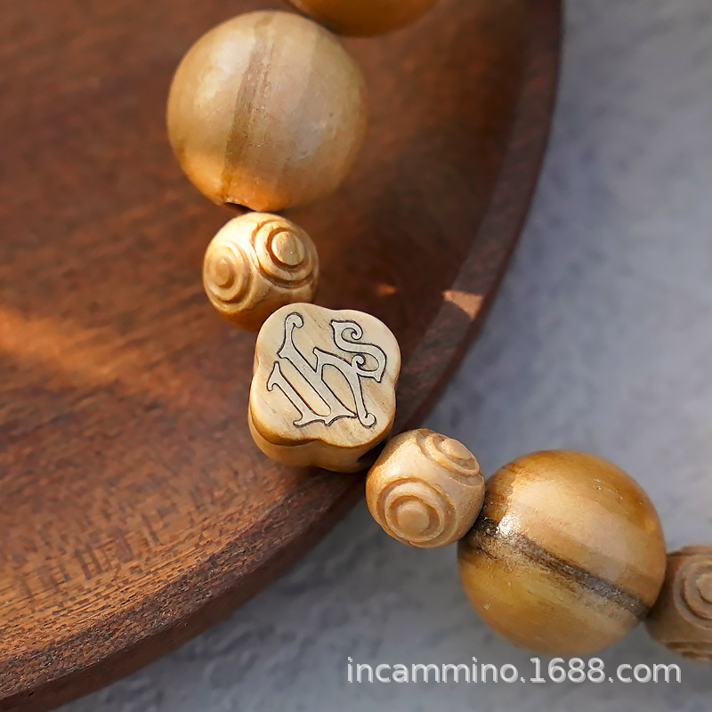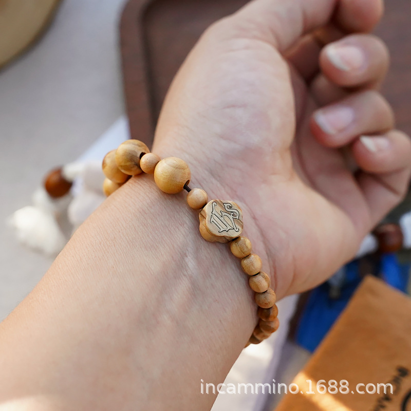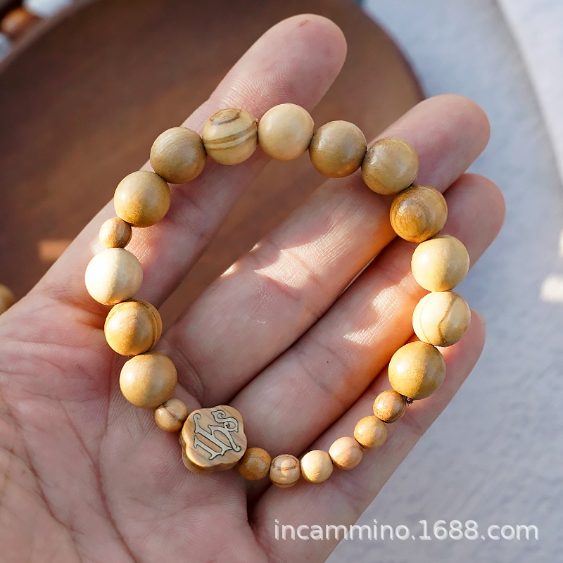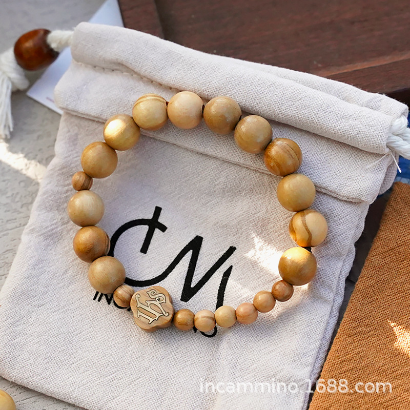 Olive wood bracelet rose rosary portable elastic bracelet large beads YS cross carving free storage bag