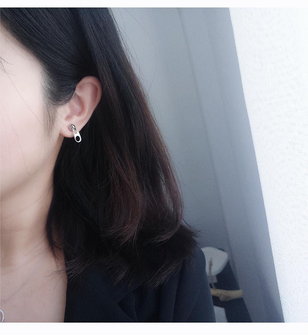 Zipper buckle earrings trendy men's and women's personalized simple light luxury niche design earrings creative high-grade zipper head earrings