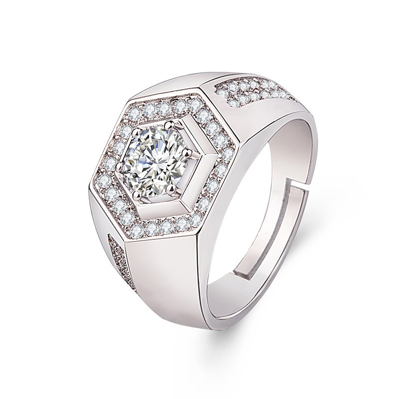 SOURCE Factory wholesale moissanite open mouth men's ring domineering men's open adjustable ring wedding ring TikTok delivery
