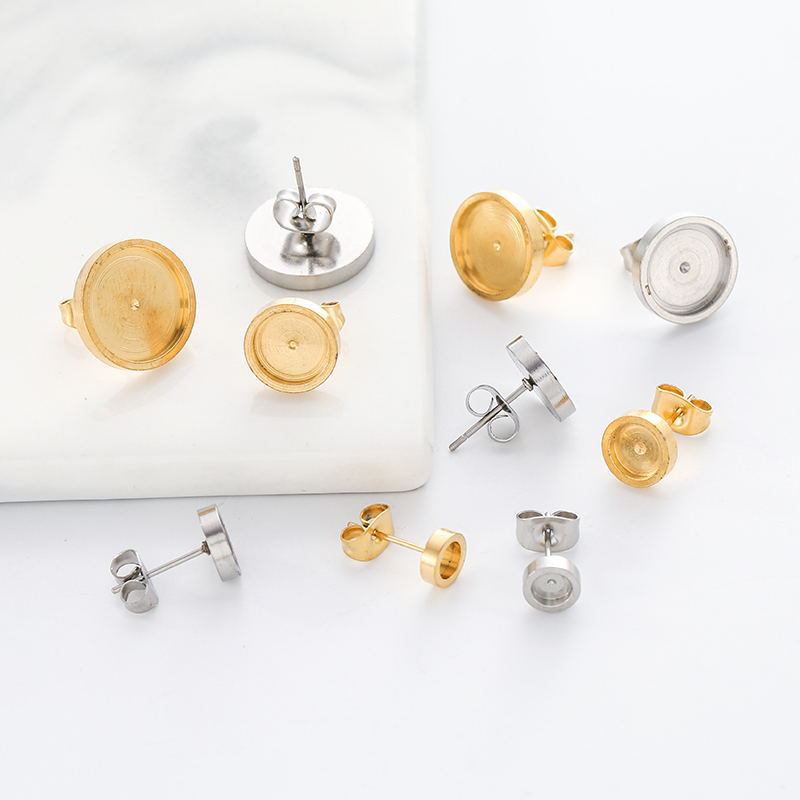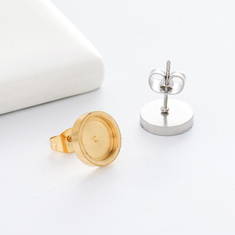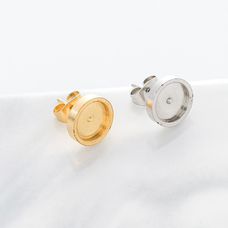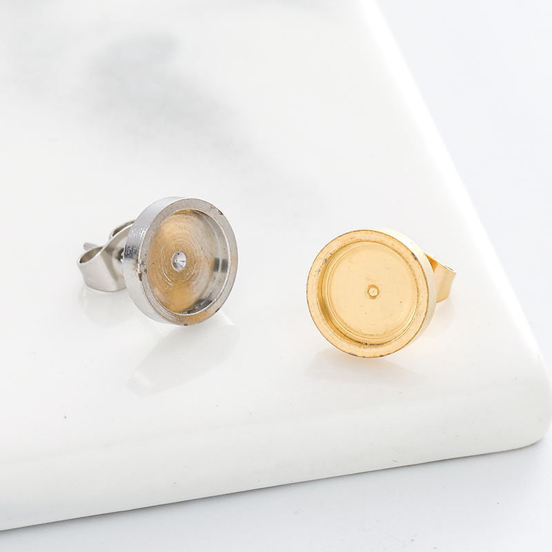 Cross-border titanium steel disc stud earrings men's and women's same style personalized all-match thickened lathe inlaid gem stud earrings stainless steel
