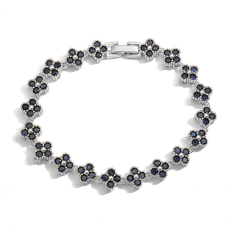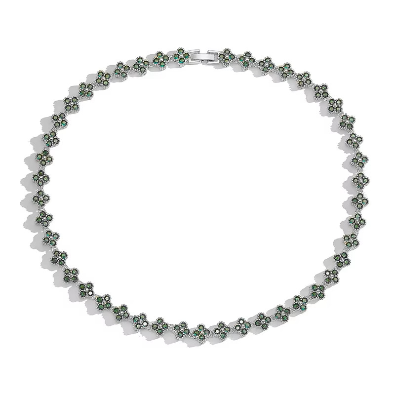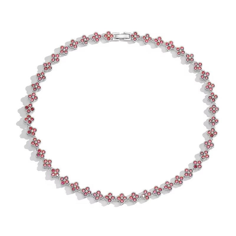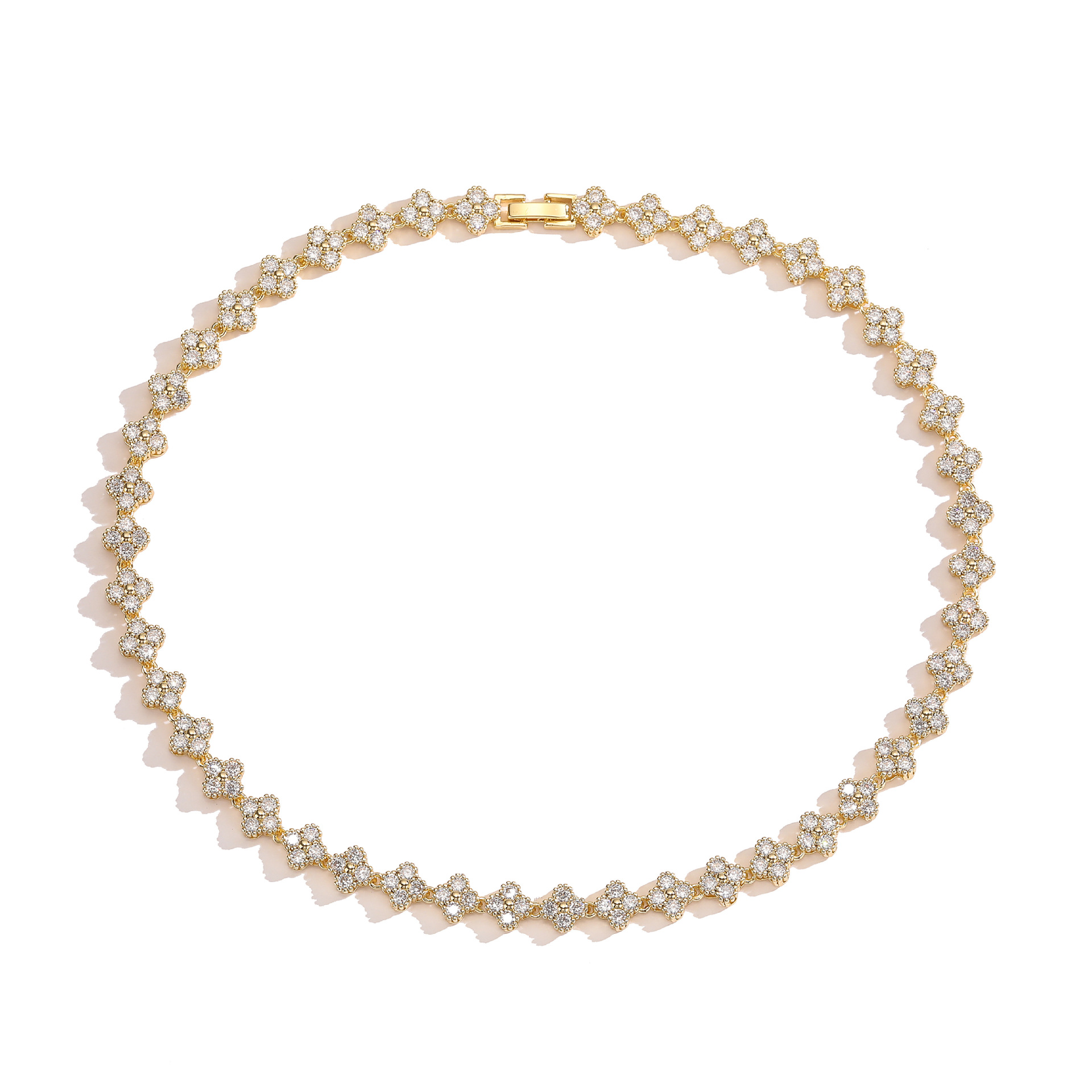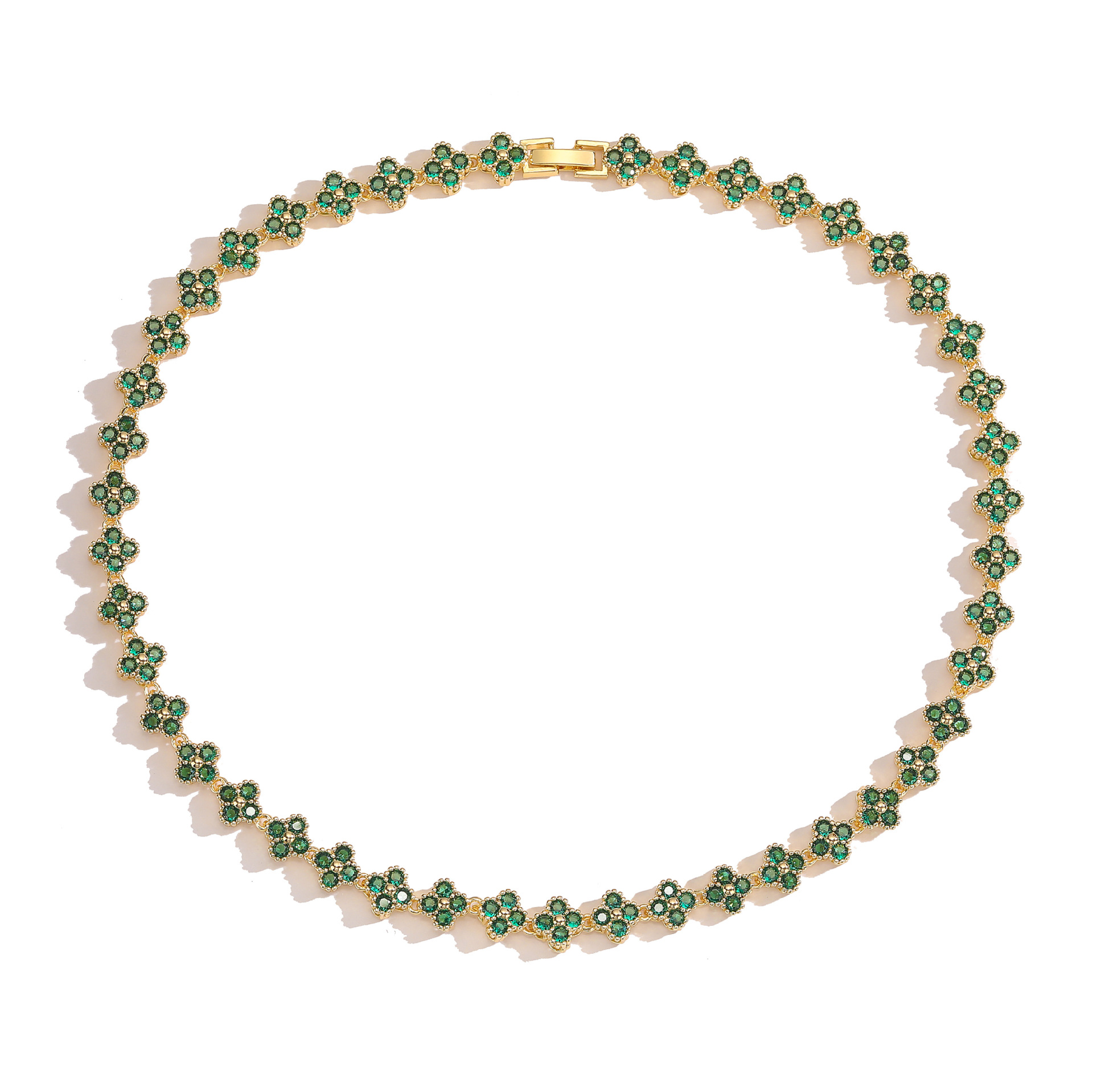 HECHENG jewelry light luxury copper plated 18K gold inlaid colored diamond flower bracelet necklace sweet clover jewelry suit