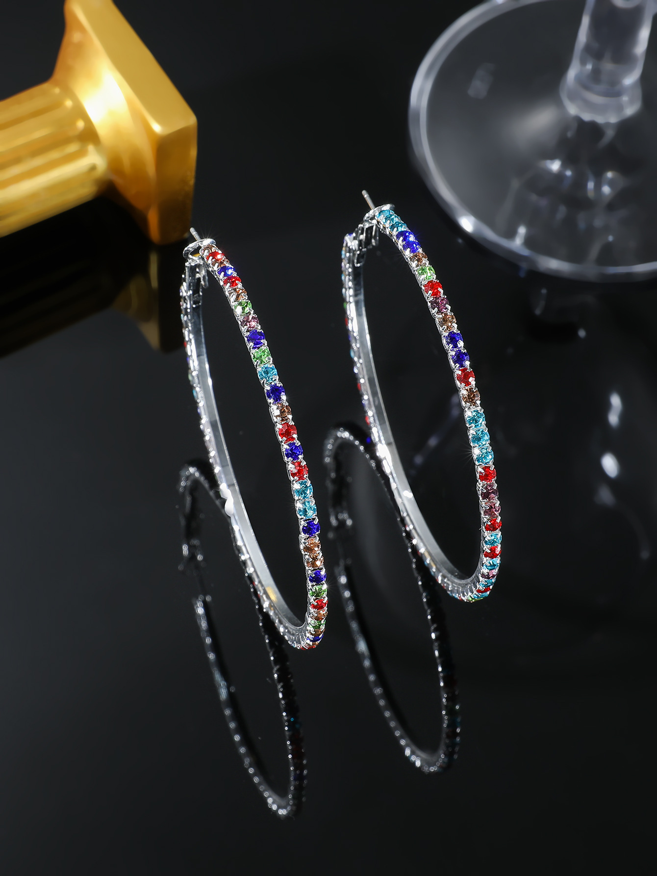 European and American Cross-border Hot Selling Distinctive Exaggerated Ear Ring Women's Simple Fashion Diamond Large Hoop Earrings Earrings earrings