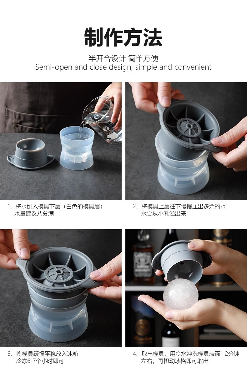 SOURCE Factory whiskey silicone round 6cm large ice ball mold maker kitchen Ice Box large spherical speed