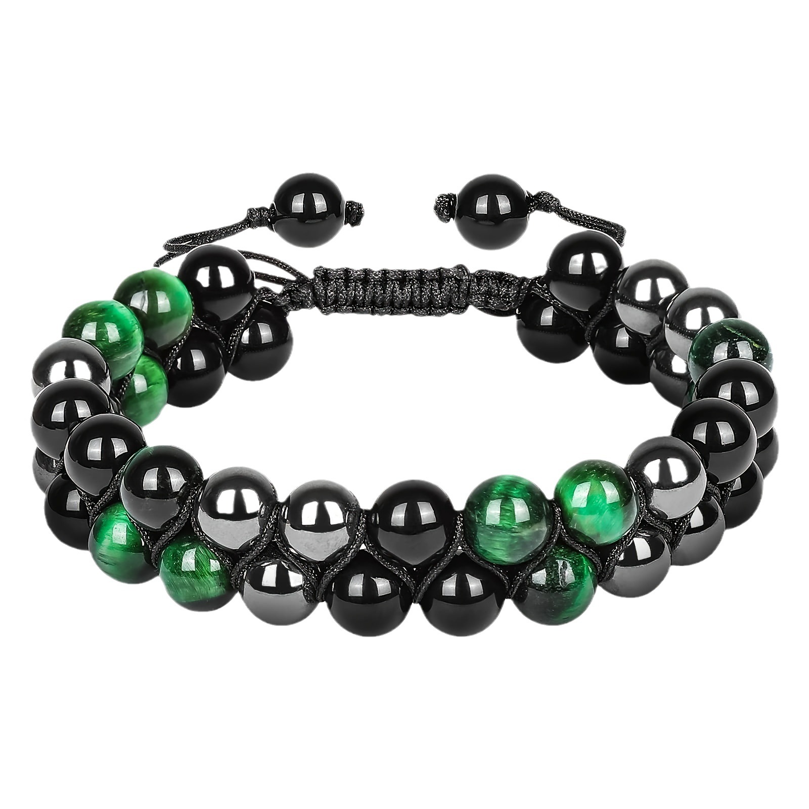 Color: 7A10mm single layer Tiger Eye Stone + 7A black agate + red iron stone