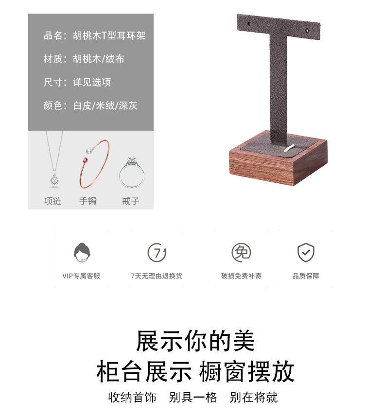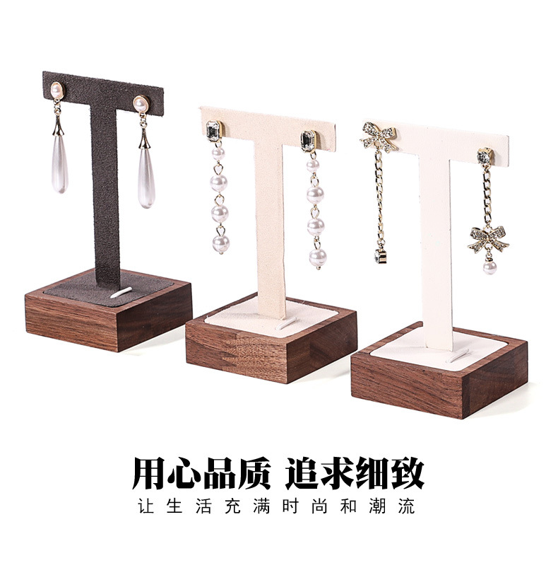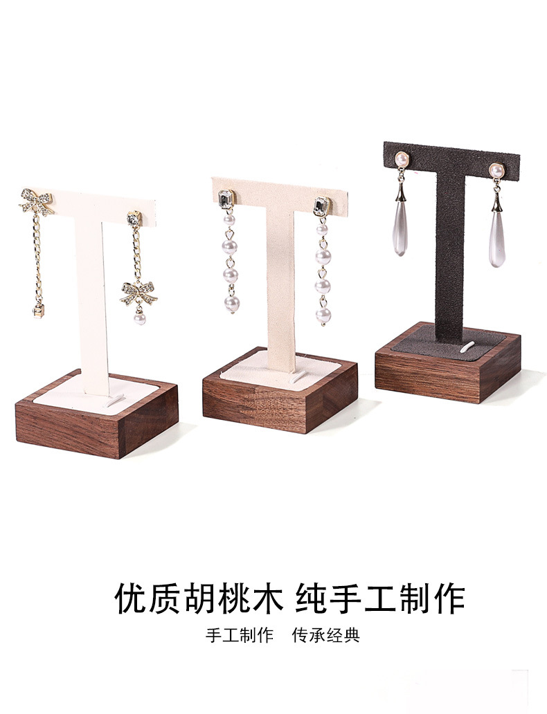 Black walnut T-shaped earrings display rack ear studs ear hook earrings shelf counter display jewelry display props