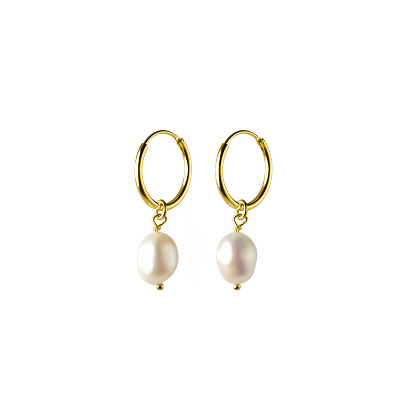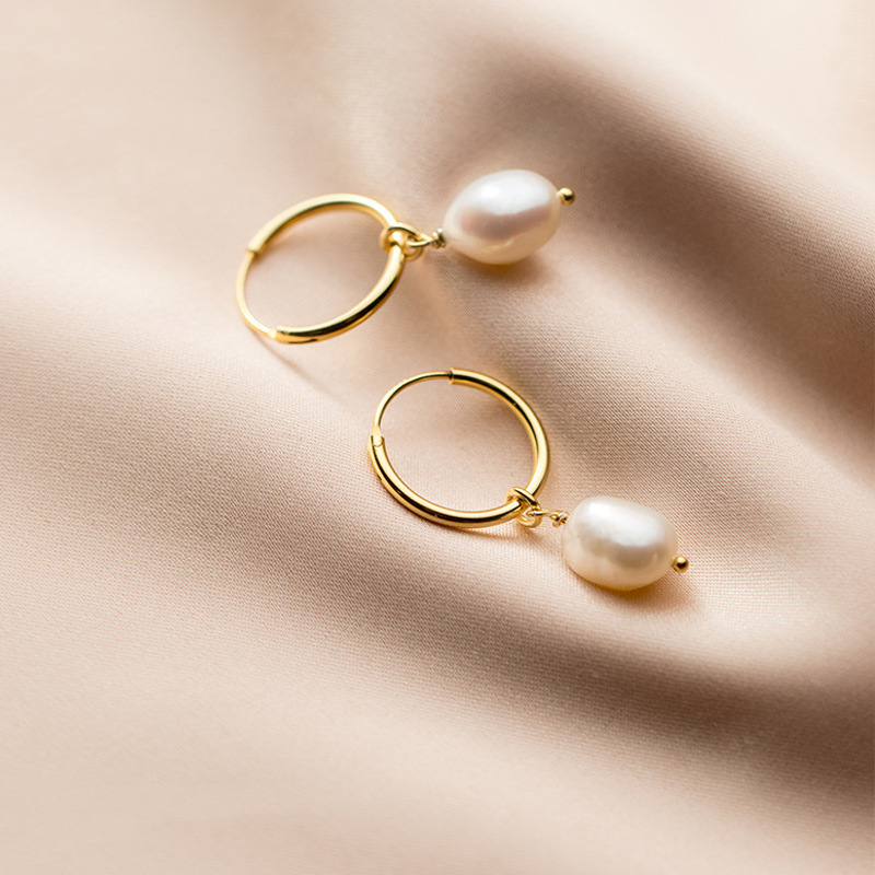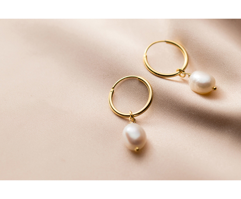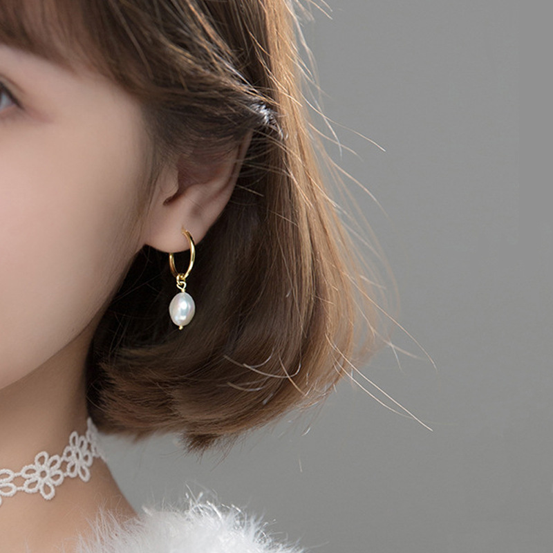 S925 Sterling Silver Earrings Women's Fashion Baroque Pearl Earrings Simple Stylish Plain Ring High-End Earrings