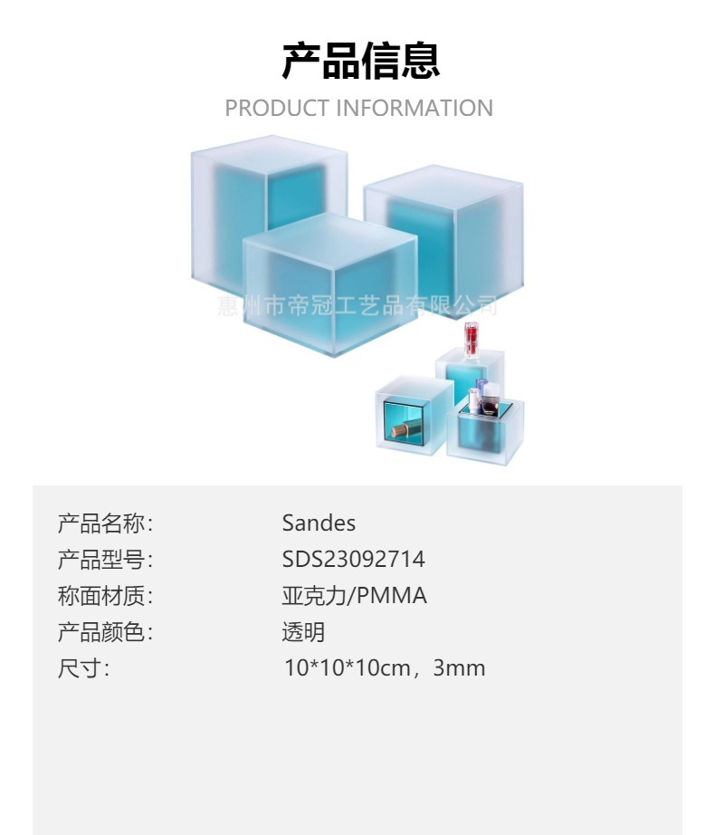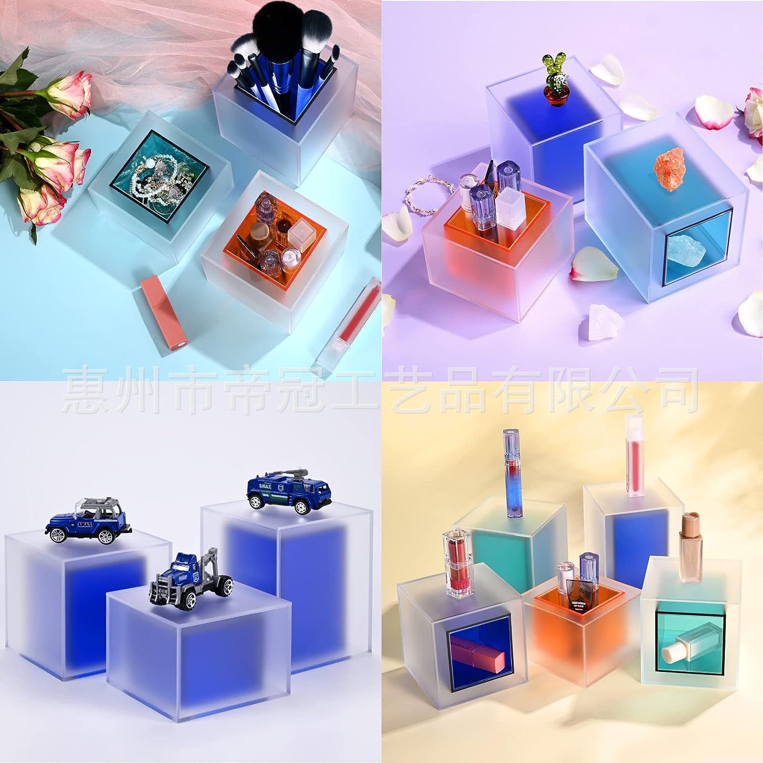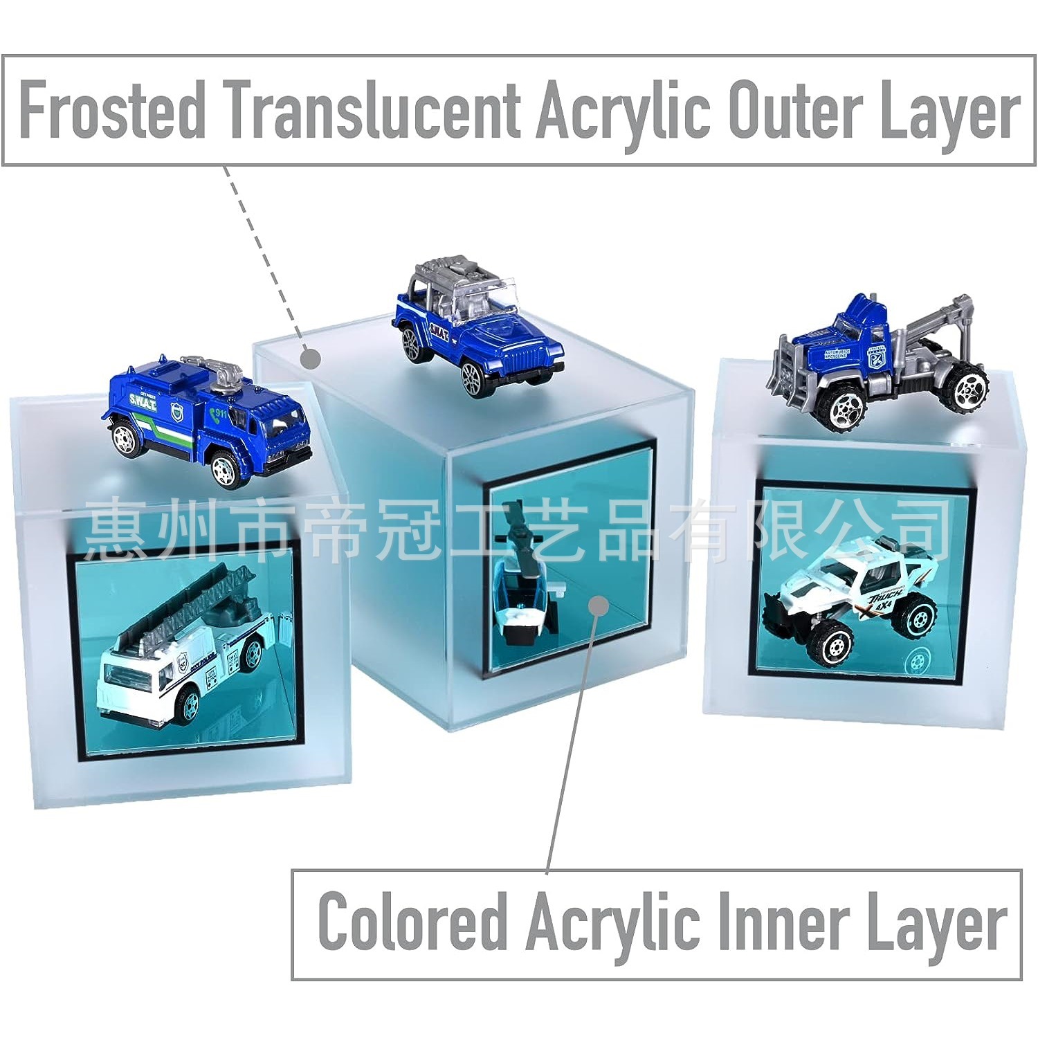 我们的丙烯酸盒子是双层的,外层是磨砂半透明丙烯酸,内层是彩色丙烯酸。不同的颜色可以匹配不同的场景。比那些普通的透明盒子更有吸引力。磨砂表面防止刮擦。