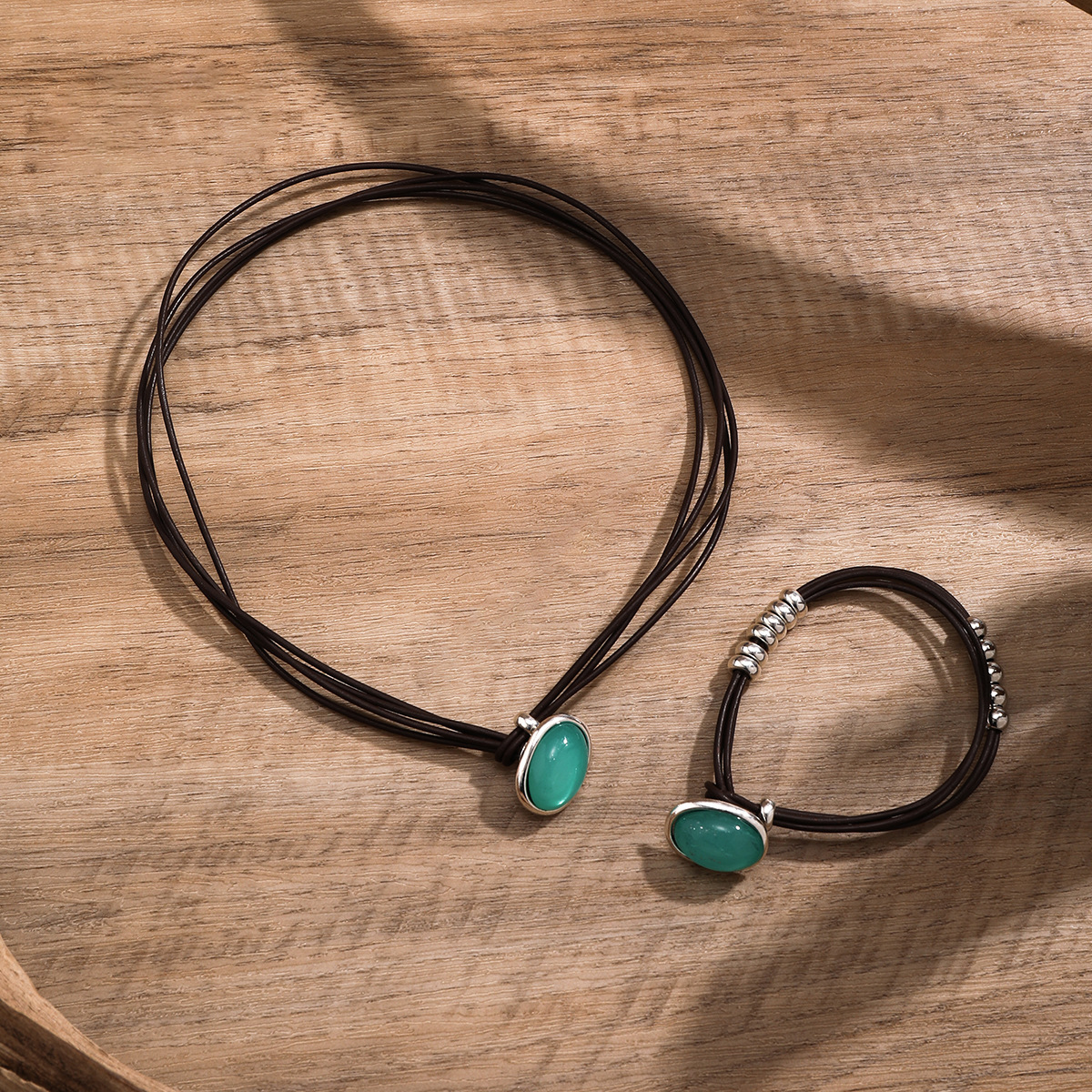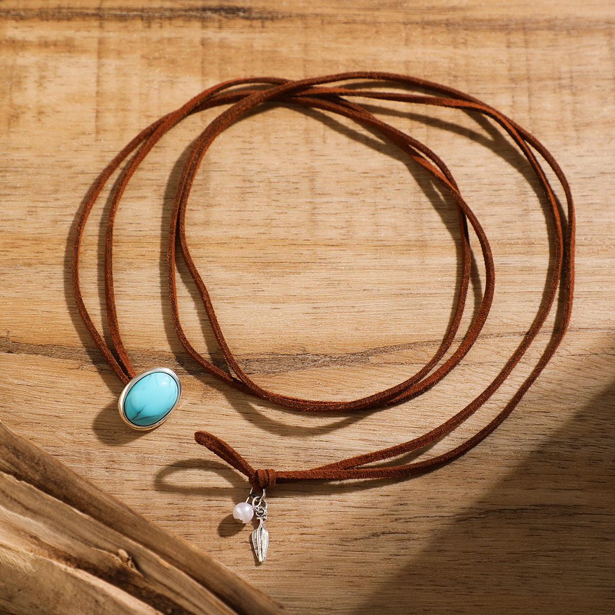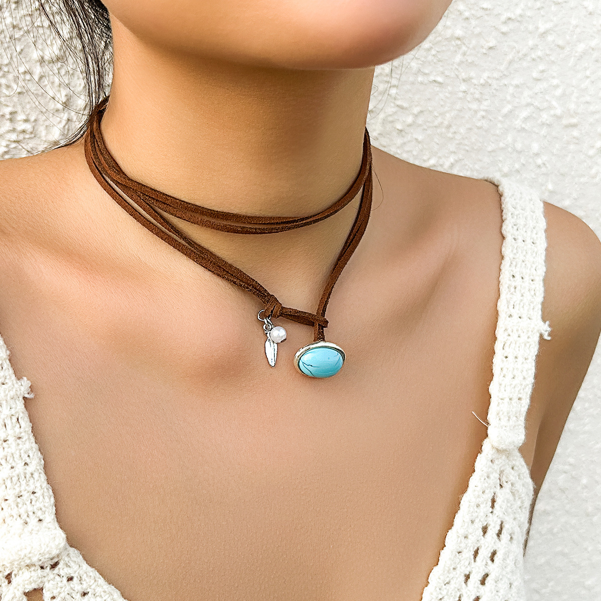 European and American cross-border ethnic style turquoise double-layer Korean velvet clavicle chain choker sweet cool simple necklace female jewelry