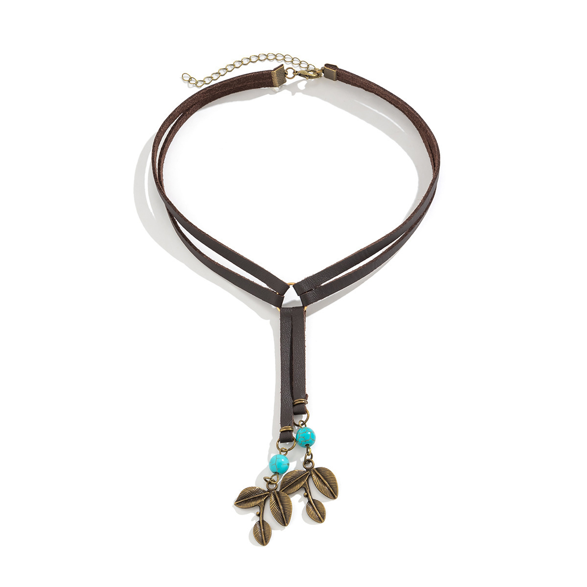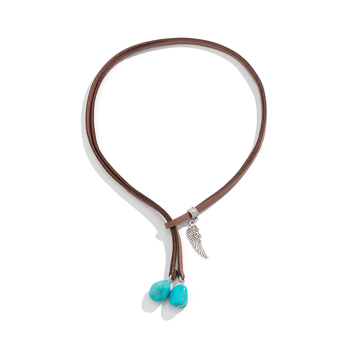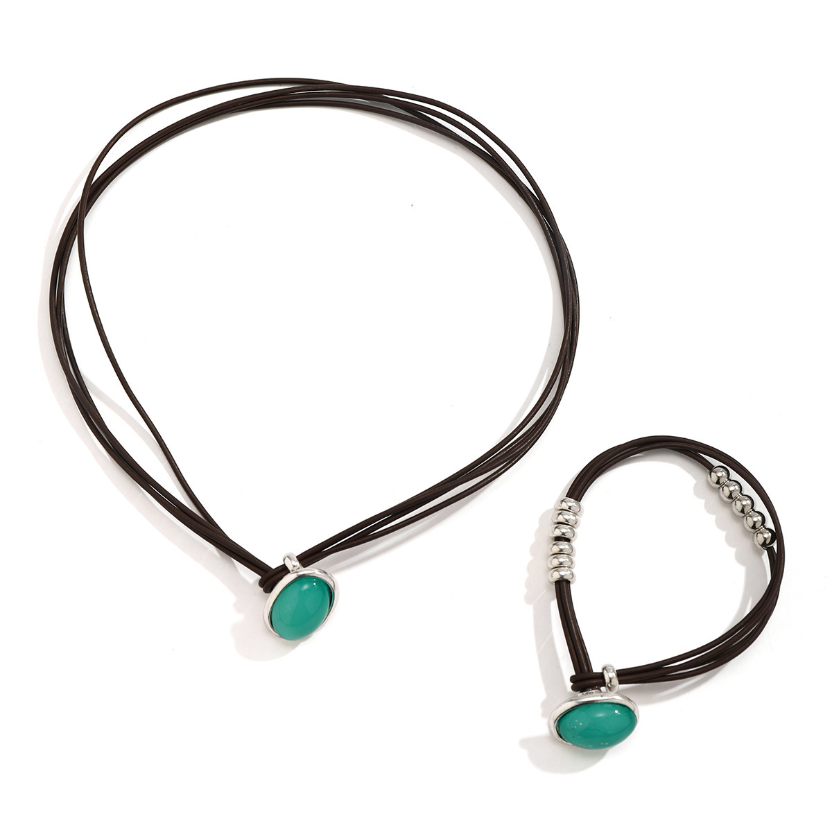 European and American cross-border ethnic style turquoise double-layer Korean velvet clavicle chain choker sweet cool simple necklace female jewelry