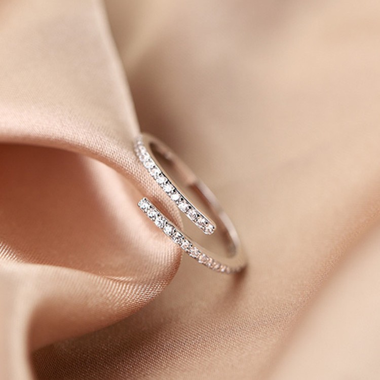 925 silver plated ins simple open ring South Korea Internet celebrity design temperament all-match zircon ring female personality simple