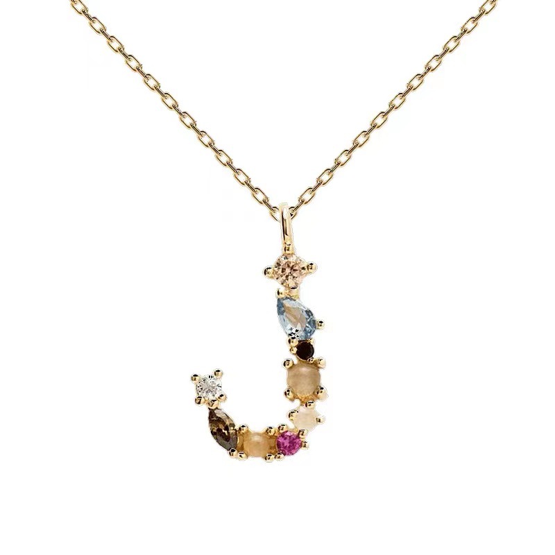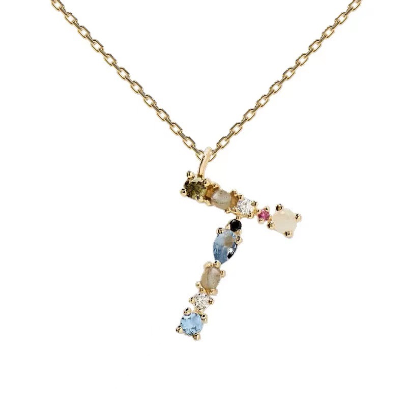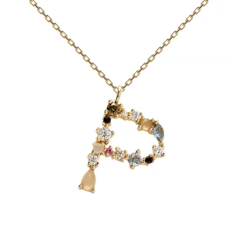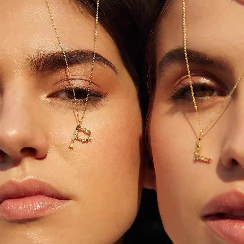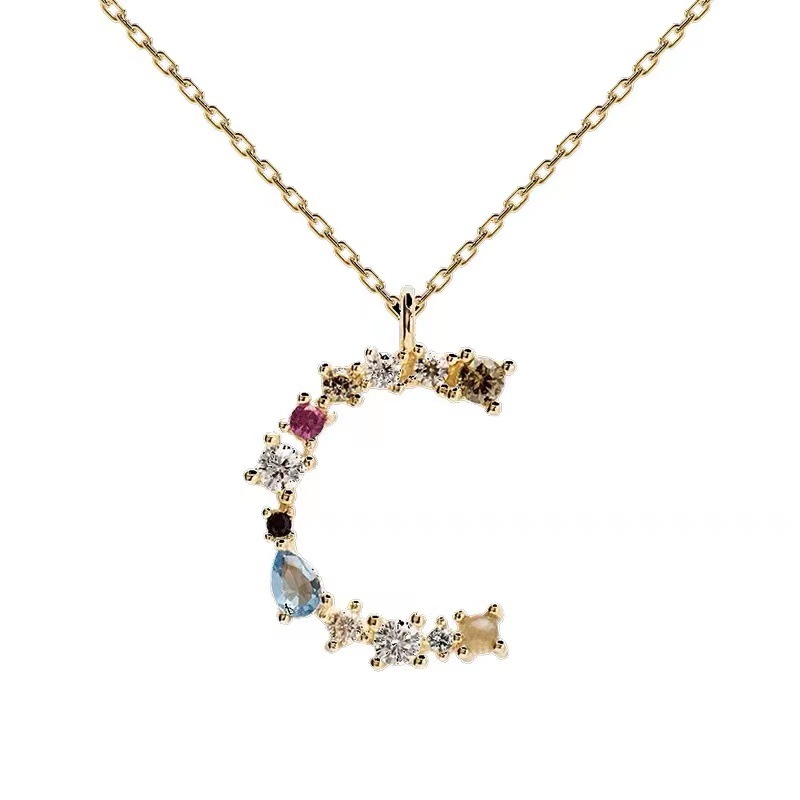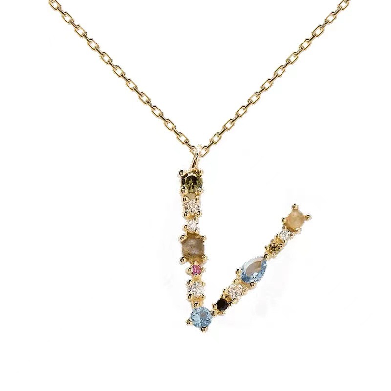 European and American Light Luxury 26 English Alphabet Necklace Female Niche Design Colorful Zircon Crystal Agate Clavicle Chain Necklace