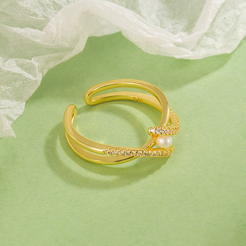 Cross Pearl Ring Unique 2023 Trendy Women's Simple Daily Fashion All-match Personality Retro Diamond Hollow